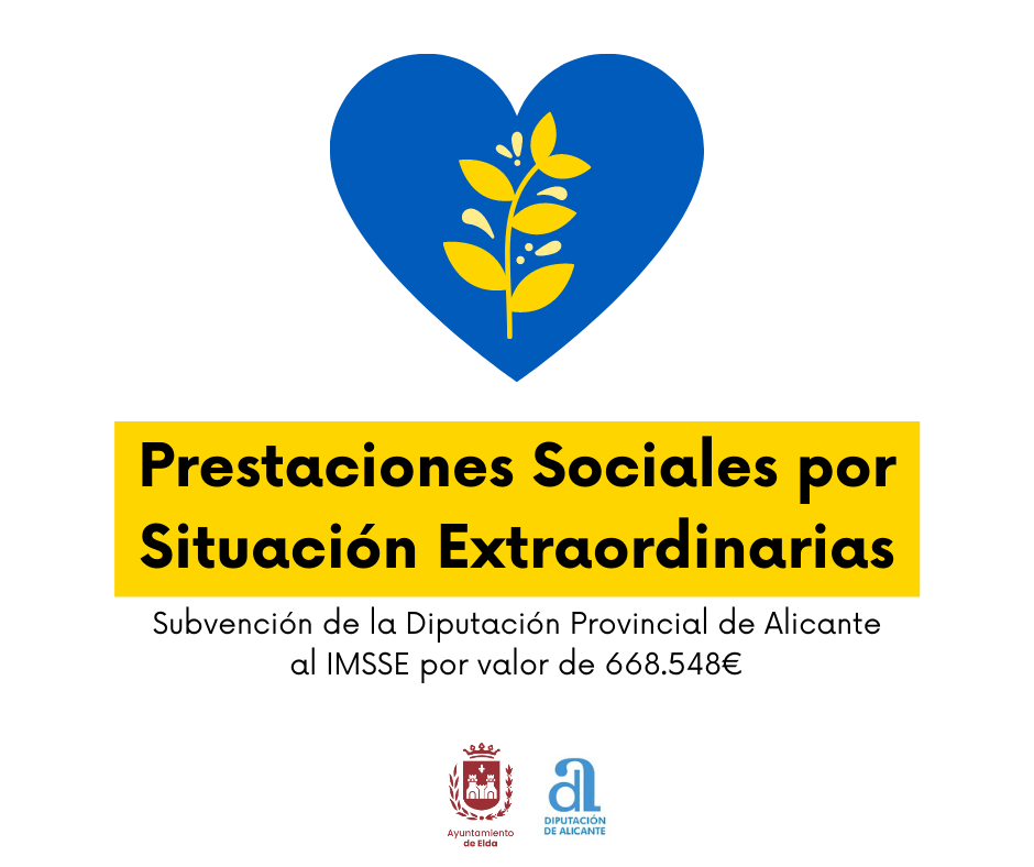 El Instituto Municipal de Servicios Sociales de Elda (IMSSE) ha recibido de la Diputación Provincial de Alicante una subvención de 668.548€ destinada a Prestaciones Sociales por Situaciones Extraordinarias, debido a la crisis económica y energética, y acogida a refugiados procedentes de Ucrania.