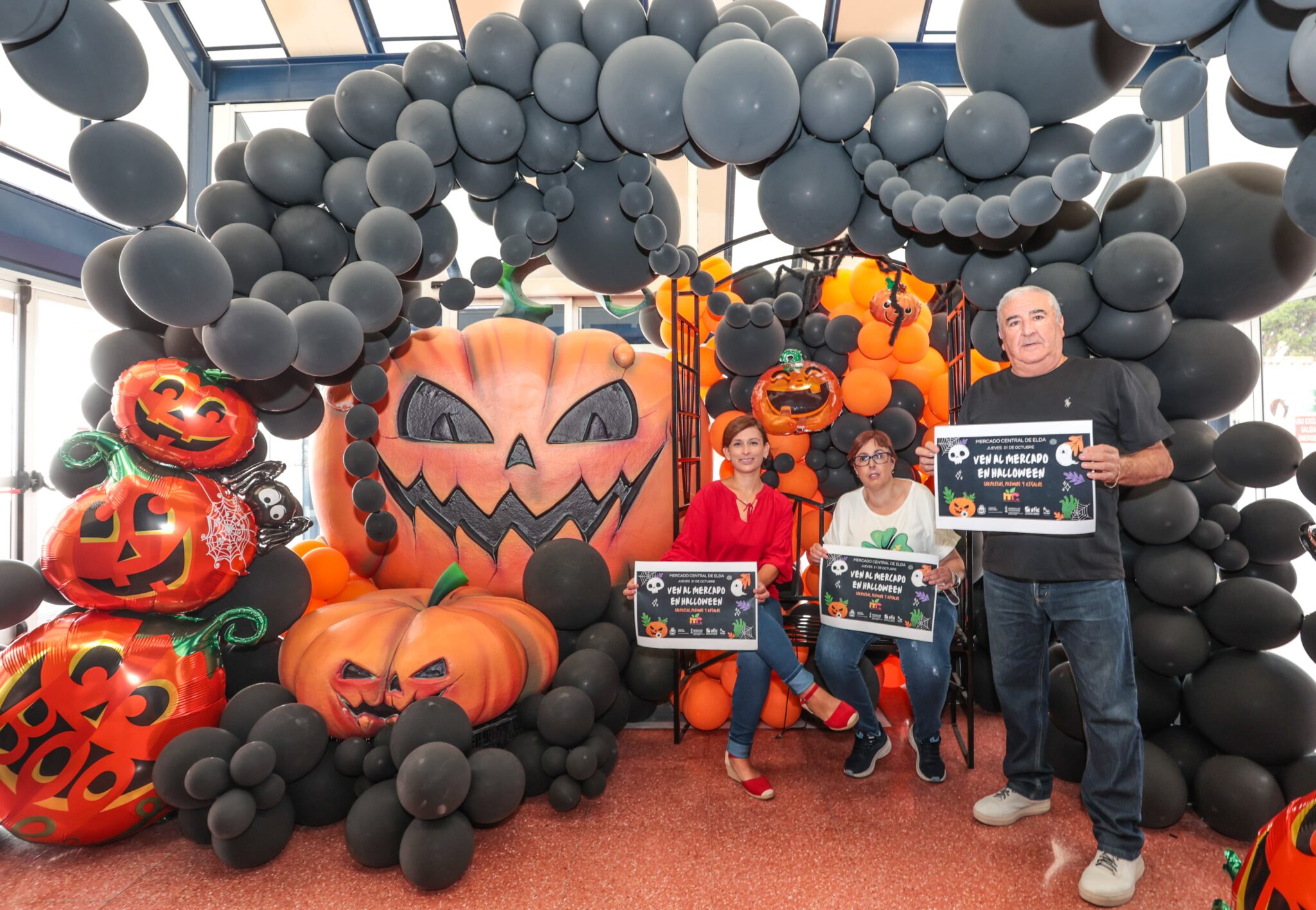 El Mercado Central de Elda celebrará un año más el día de Halloween con un programa de actividades dirigidas a sus clientes. La concejala de Comercio y Mercados, Silvia Ibáñez, acompañada por el vicepresidente de la Asociación de Comerciantes del Mercado Central, Francisco Vico, y la tesorera de la Asociación, Rita Campos, han dado a conocer los detalles de una celebración que tiene su epicentro en el espectacular photocall tematizado instalado en el vestíbulo de acceso al Mercado desde la calle Jaime Balmes.