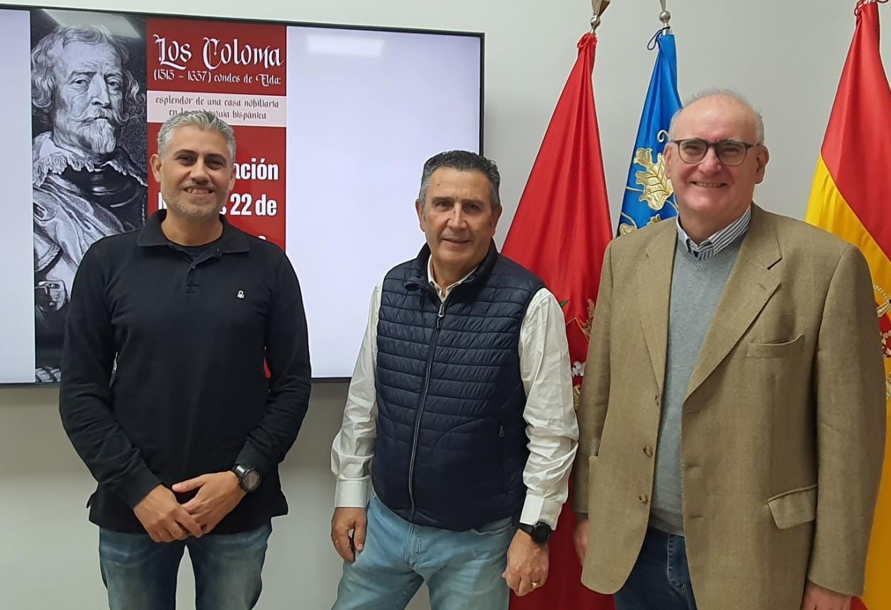 El concejal de Cultura, Amado Navalón, acompañado del presidente de la Fundación Paurides, Emilio Maestre, y del comisario del Año Coloma, José David Busquier, han dado a conocer los detalles de una exposición que “es un compendio de todos los documentos y también de piezas de los fondos del propio Museo. Es una exposición muy representativas a la que, además de toda la ciudadanía, vamos a invitar a todos los centros educativos de Elda que contarán con un guía experto para que explique a los alumnos y alumnas todo el contenido de la exposición”.