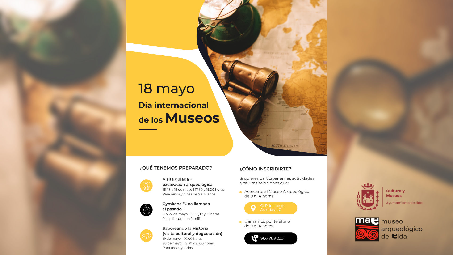 Las personas interesadas en participar en las actividades del Museo Arqueológico pueden inscribirse de manera presencial en el mismo, de 9.00 a 14.00 horas, o llamando por teléfono al 966 989 233 (de 9.00 a 14.00 horas).