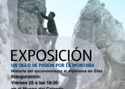 La Concejalía de Deportes del Ayuntamiento de Elda y el semanario Valle de Elda presentan ‘Un siglo de pasión por la montaña en Elda’, una ambiciosa exposición comisariada por Juan Manuel Maestre que propone un recorrido histórico, visual y emocional por la evolución de las actividades de montaña en la ciudad, desde los primeros exploradores locales hasta las grandes expediciones alpinas internacionales.