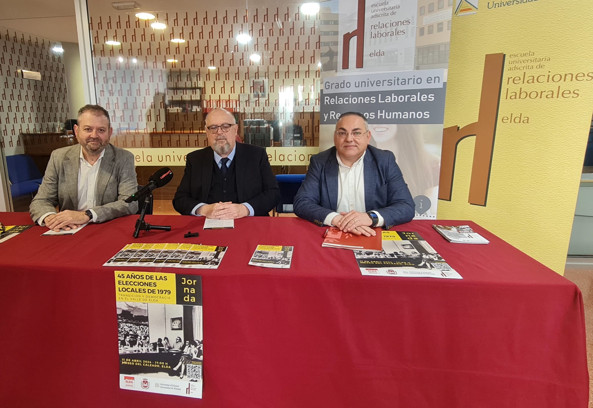 El Museo del Calzado acogerá este jueves, a partir de las 17.00 horas, una interesante jornada en la que, con motivo del 45 aniversario de las elecciones locales, se analizará cómo se vivió la Transición en Elda y comarca. El concejal de Relaciones con la Universidad, Enrique Quílez, acompañado por el director adjunto de la EURLE, Gabriel García, y el de la Sede Universitaria de Elda, José Joaquín Egido, han presentado una jornada en la que, en palabras del edil, «se analizará un hecho histórico como fueron las primeras elecciones locales después de la Dictadura. Fue el momento en el que la voz del pueblo comenzó a resonar en los pasillo del poder local dando paso a una época de participación ciudadana».