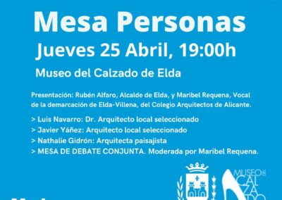 El alcalde de Elda, Rubén Alfaro, dará la bienvenida a los arquitectos Luis Navarro, Javier Yáñez y Nathalie Gidrón, miembros del Colegio Territorial de Arquitectos de Alicante que hablarán sobre la importancia de la arquitectura para mejorar la calidad de vida de las personas en las ciudades.