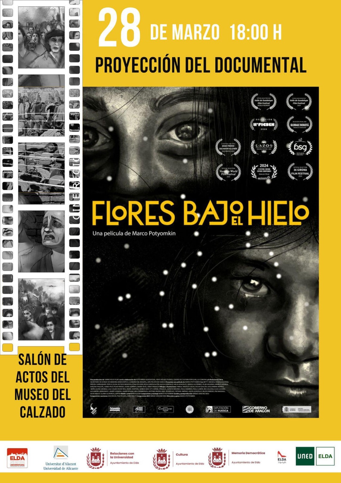 El salón de actos del Museo del Calzado de Elda acogerá el próximo viernes, a partir de las 18:00 horas, la proyección del documental ‘Flores bajo el hielo’, de Marco Potyomkin. Se trata de una actividad realizada por la Concejalía de Memoria Democrática, en colaboración con las áreas de Cultura y de Relaciones con la Universidad, la UNED de Elda y la Sede de la UA en Elda.