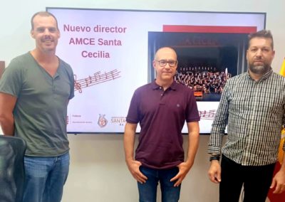 El eldense Rafael Rico ha sido presentado hoy como nuevo director de la Banda de la AMCE Santa Cecilia. El concejal de Cultura, Iñaki Pérez, que ha estado acompañado por el presidente de la AMCE Santa Cecilia, David Mancera, y por el propio Rafael Rico, ha destacado que «el nuevo director es una persona dedicada a la música y la cultura en nuestra ciudad. Con sus amplios conocimientos y experiencia confiamos en que llevará a la Banda Santa Cecilia a nuevos niveles de excelencia artística». David Mancera ha indicado que «el proyecto de Rafael Rico ha sido elegido entre 28 propuestas».