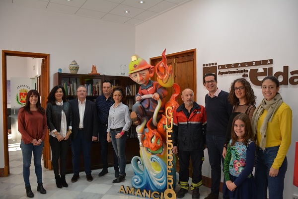 La Falla Huerta Nueva ha entregado esta mañana su ninot indultado, una figura que representa al Jefe del Parque de Bomberos de Elda Amancio Guerrero, que se expondrá en el MUBOMA, el Museo del Consorcio Provincial de Bomberos de Alicante, situado en la vecina localidad de Alcoy.