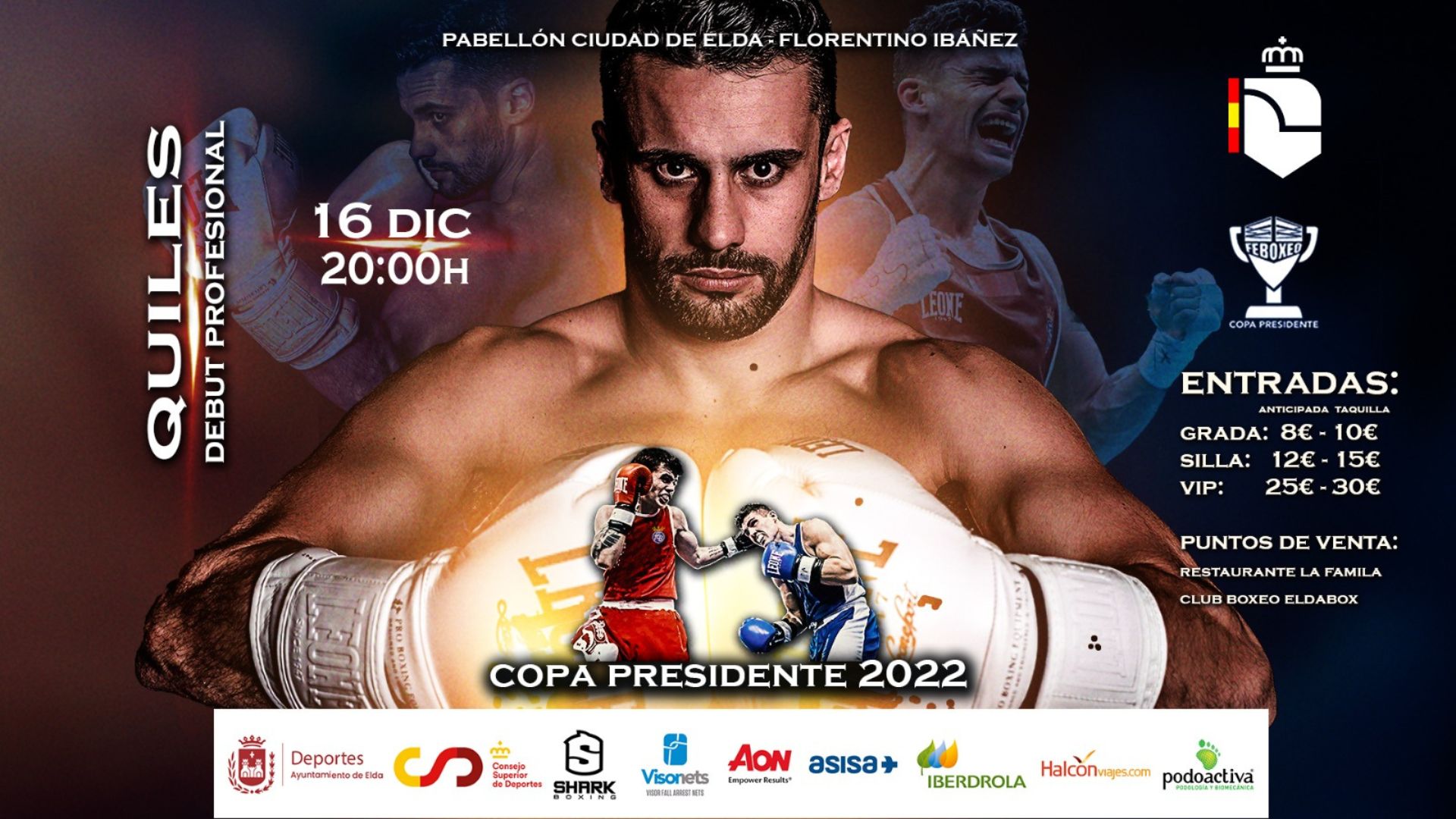 El pabellón Ciudad de Elda–Florentino Ibáñez acogerá el próximo 16 de diciembre la V edición de la Copa Presidente 2022 de boxeo. El concejal de Deportes, Fernando Gómez, acompañado por el púgil olímpico, José Quiles, el presidente de la Real Federación Española de Boxeo (RFEB), Felipe Martínez, el presidente del Club Eldabox, Juan Manuel Martínez, y Diego Quiles, hermano del boxeador, han anunciado que Elda será sede de una nueva edición de la Copa Presidente 2022.