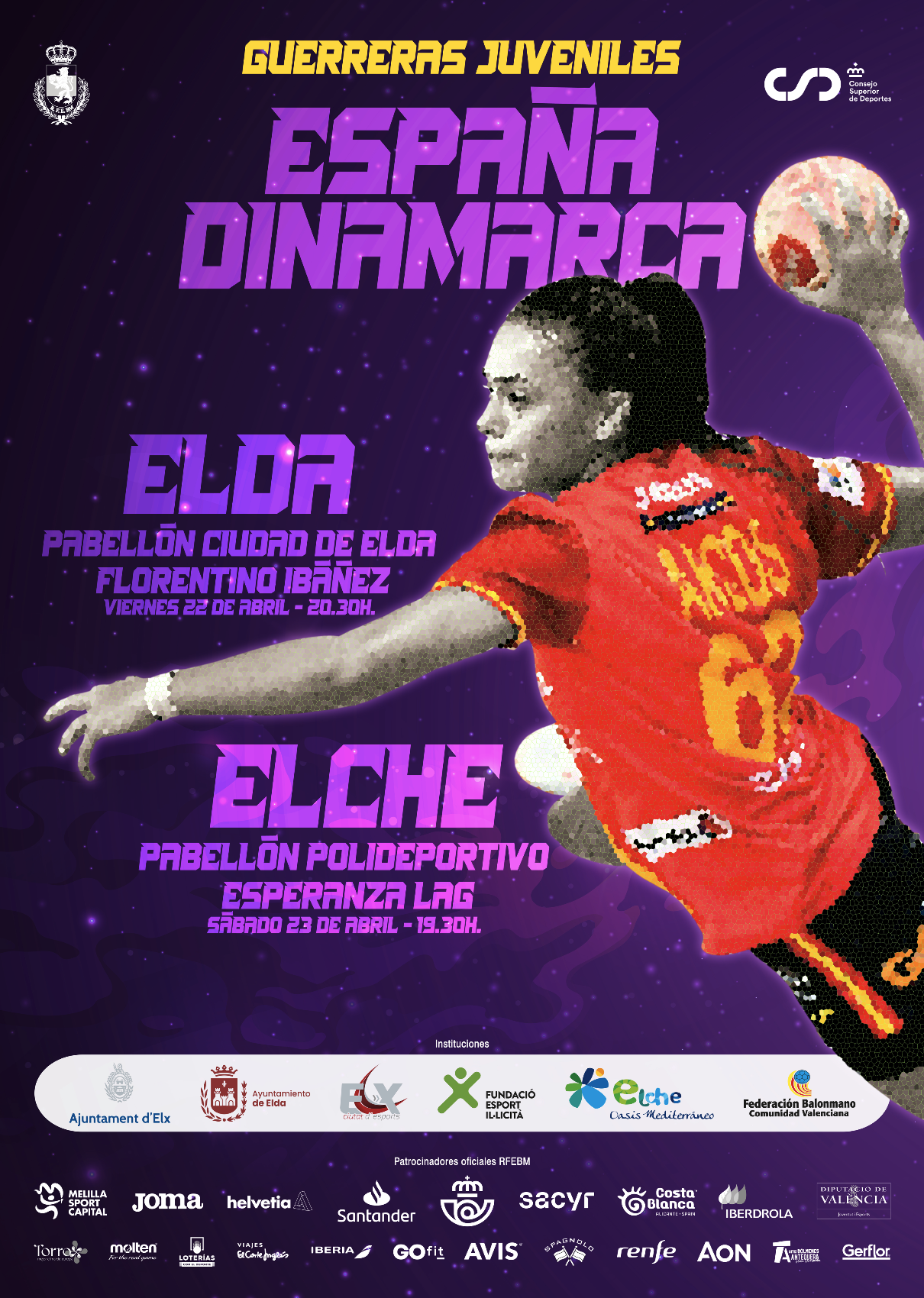 En relación al partido entre España y Dinamarca, Fernando Gómez ha explicado que “la selección española de balonmano femenino juvenil estará concentrada del 18 al 24 de abril en la ciudad de Elche, con la que tenemos una gran sintonía, y durante esta concentración el combinado nacional disputará dos amistosos contra Dinamarca. El primero de ellos tendrá lugar el 22 de abril, a las 20.30 horas, y se disputará en el Pabellón Florentino Ibáñez-Ciudad de Elda, y un día después se disputará el segundo en Elche, a las 19.30 horas. Animo a todos los aficionados y aficionadas que se acerquen al Pabellón Florentino Ibáñez para disfrutar de manera gratuita de nuestra selección juvenil”.