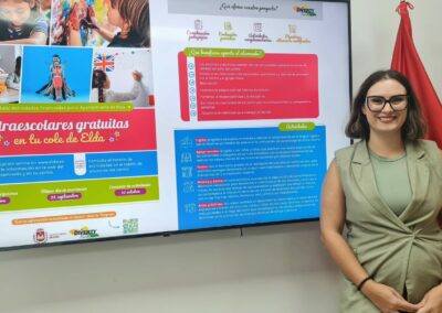 La edil ha indicado que «el plazo de inscripción en las Actividades Extraescolares Gratuitas ofrecidas por el Ayuntamiento de Elda se abrirá el próximo 11 de septiembre. Las familias que quieran inscribir a sus hijos e hijas podrán hacerlo, una vez haya comenzado el curso escolar y hasta el 25 de septiembre, de manera online en la web municipal (www.elda.es)».