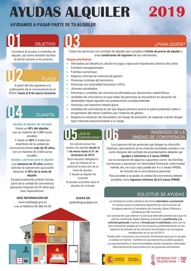 “Estas ayudas corresponden a lo presupuestado en la Generalitat Valenciana en el Pacto del Botànic en el que hay 20 millones de euros este año para el programa de alquiler de la vivienda”, ha explicado Navalón.