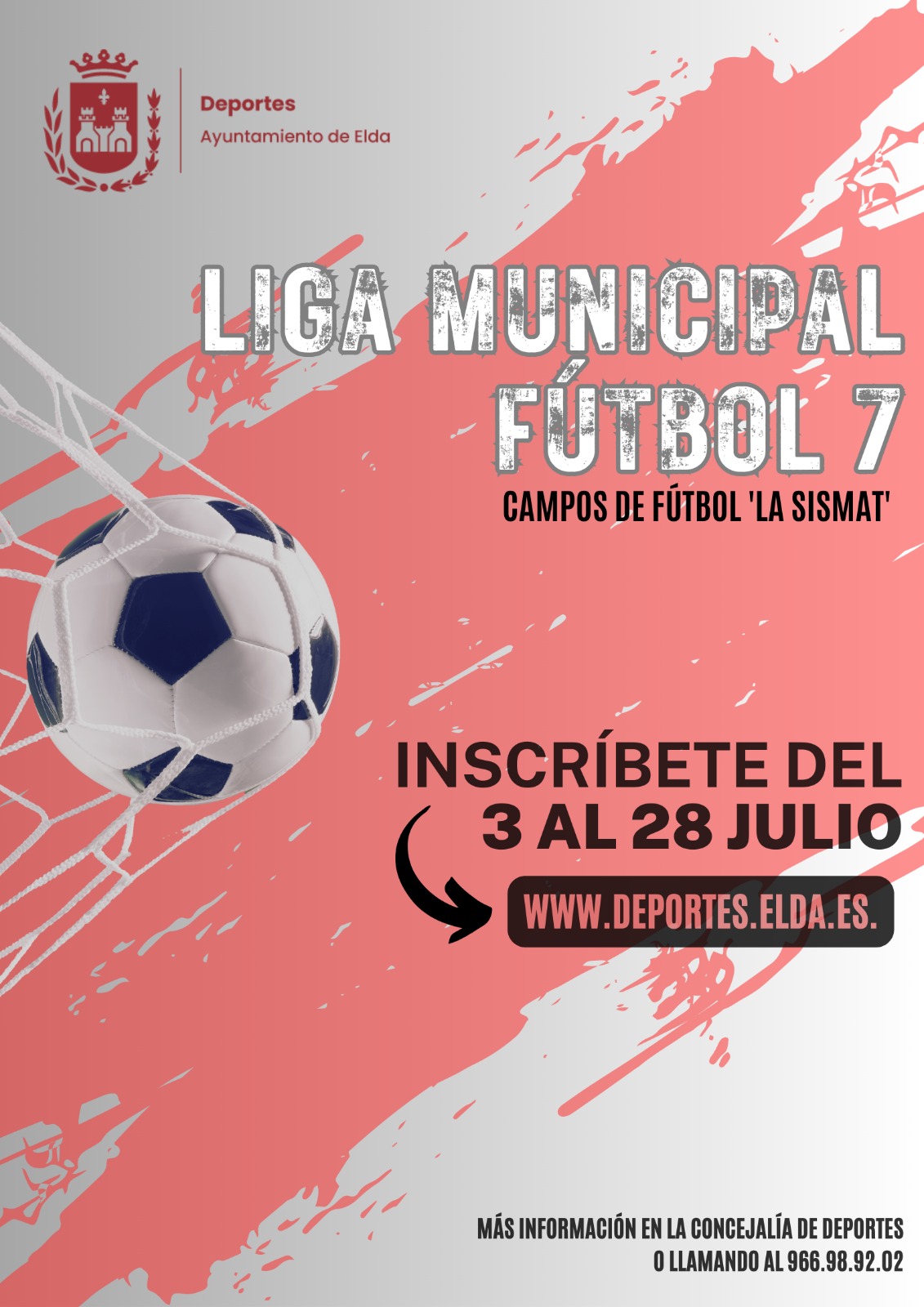 La Concejalía de Deportes pone en marcha una nueva edición de la Liga Municipal de Fútbol 7, que en esta edición contará con un máximo de 16 equipos. La inscripción, que se abre el próximo lunes 3 de julio, se realiza a través de la web www.deportes.elda.es y con posterioridad la Concejalía de Deportes contactará con cada equipo para adjuntarle la hoja de pago y se dará por válida la inscripción cuando se haga efectivo el pago. El teléfono de contacto es el 966 989 202.