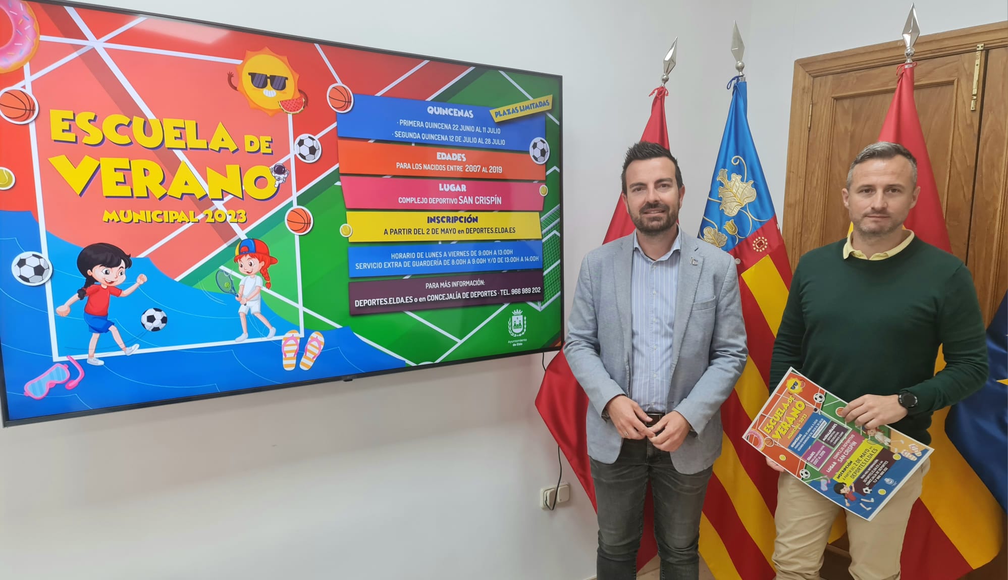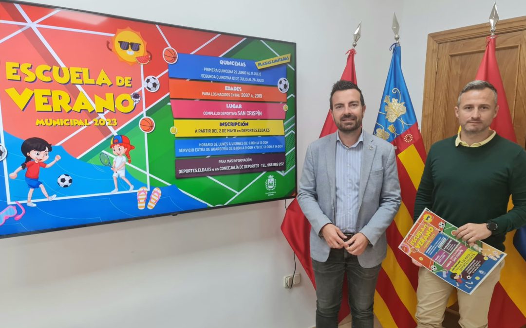 El concejal de Deportes, Fernando Gómez, ha presentado esta mañana una nueva edición de la Escuela Municipal de Verano 2023 que comenzará el 22 de junio y se prolongará hasta el 28 de julio. El edil, que ha estado acompañado por el técnico de Deportes, José María Martínez, ha explicado que «el plazo de inscripción se abre el próximo martes, 2 de mayo, y como es habitual las actividades se llevarán a cabo en dos turnos, del 22 de junio al 11 de julio y del 12 al 28 de julio».