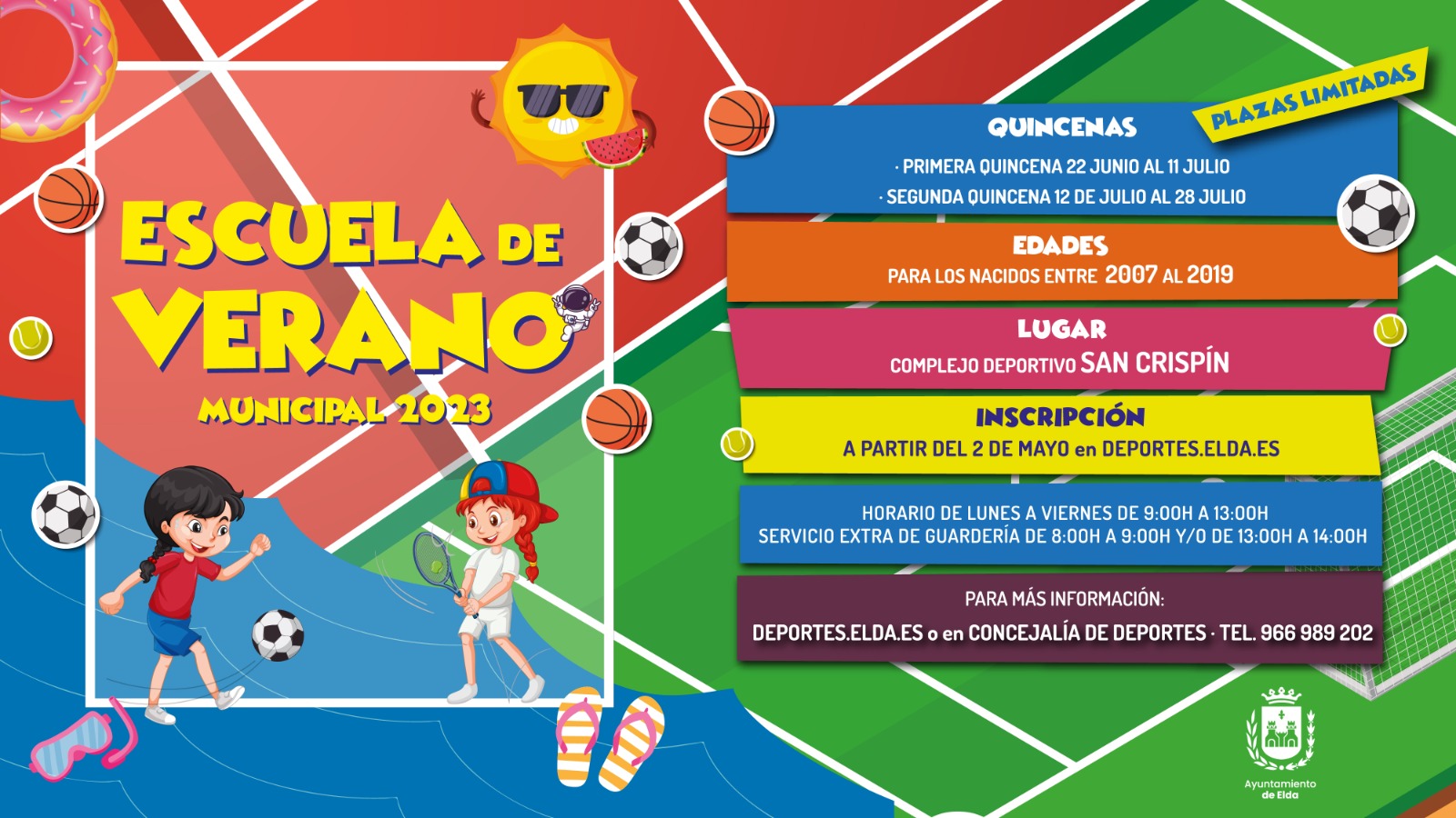 Los niños y niñas empadronadas en Elda disponen del 2 al 28 de mayo para inscribirse y, una vez se hayan distribuidos los grupos, se volverá a abrir la inscripción el 31 de mayo para las plazas que queden disponibles para los niños y niñas de todas las poblaciones. La inscripción puede realizarse de manera online, a través de la web deportes.elda.es y se puede ampliar la información en el teléfono 966 989 202.