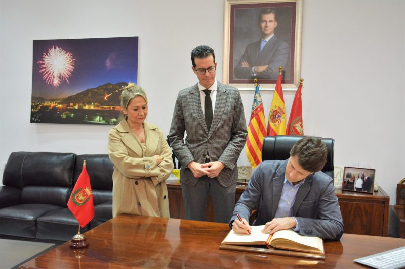 Durante su visita al Ayuntamiento de Elda, el alcalde ha mostrado al representante de la CE la vara de mando de Manuel Azaña, instalada en el vestíbulo de la Casa Consistorial. Müller también ha firmado en el Libro de Honor del Ayuntamiento de Elda. A continuación, Jochen Müller, junto a Rubén Alfaro y Rodríguez-Piñero, ha visitado la fábrica de calzado Magrit y se ha reunido con empresarios del sector en la sede de Inescop.