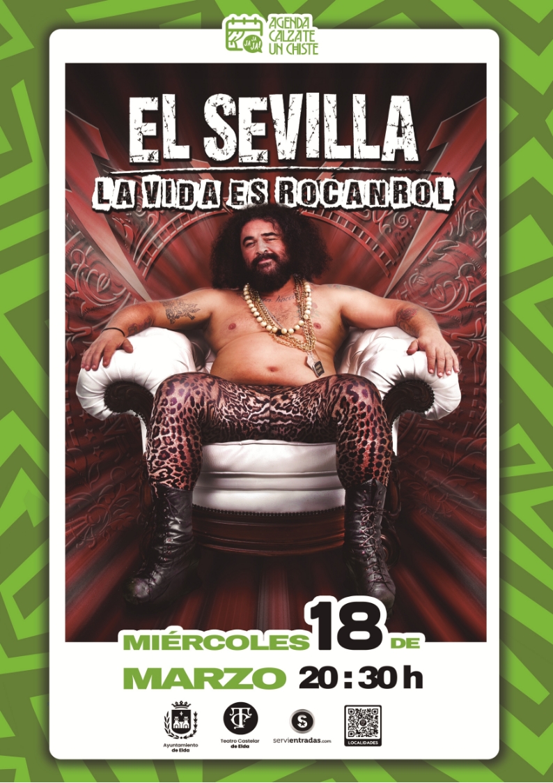 El miércoles 18 de marzo, a las 20:30 horas, la risa llenará el patio de butacas del Teatro Castelar con El Sevilla, el cantante de Los Mojinos Escozíos que lleva más de diez años desarrollando en solitario su faceta de cómico. En esta ocasión ofrecerá el monólogo ‘La vida es rocanrol’. ¿Qué piensa su madre de sus pelos, de su ropa y de sus tatuajes? ¿Cómo educa a sus hijos un tipo que tiene un grupo que se llama Los Mojinos Escozíos? Éstas y muchas otras dudas serán resueltas en este ensayo a modo de monólogo.