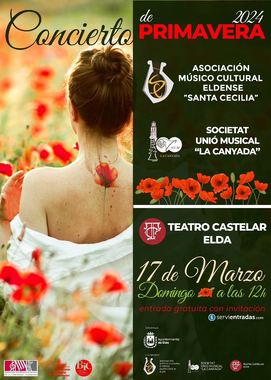 El Teatro Castelar inaugurará la primavera el próximo 17 de marzo con un concierto de la AMCE Santa Cecilia en el que también participará la banda de la Societat Unió Musical La Canyada. El concierto dará comienzo a las 12.00 horas y la entrada es gratuita con invitación, que podrá conseguirse online en servientradas.com