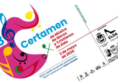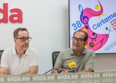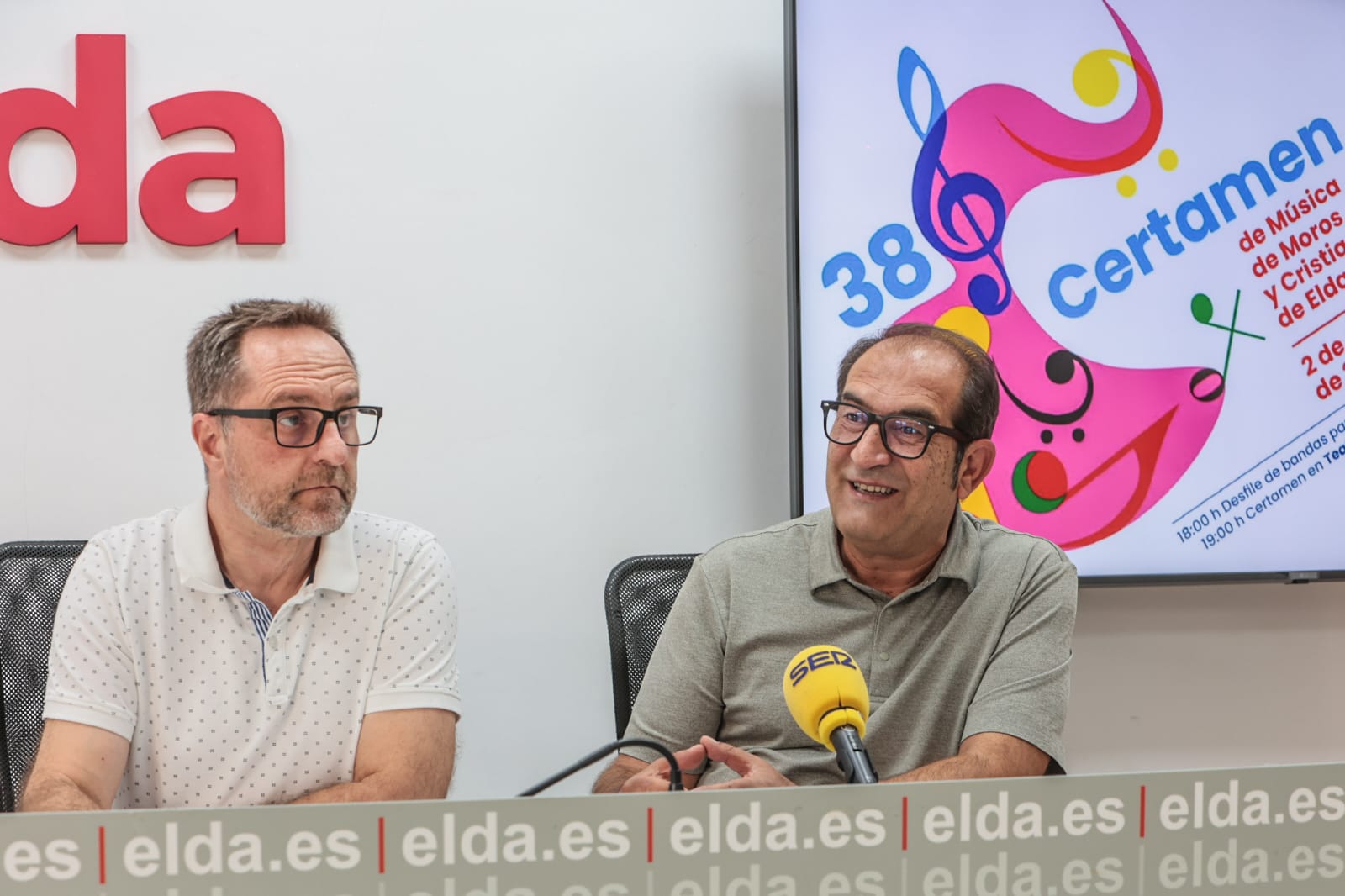 El concejal de Fiestas, David Guardiola, y el presidente de la Junta Central de Compartas de Moros y Cristianos de Elda, Pedro Serrano, han anunciado esta mañana que el Certamen de Música de Moros y Cristianos, que se celebrará el 2 de mayo de 2026 en el Teatro Castelar, recuperará en su edición número 38 su carácter competitivo.