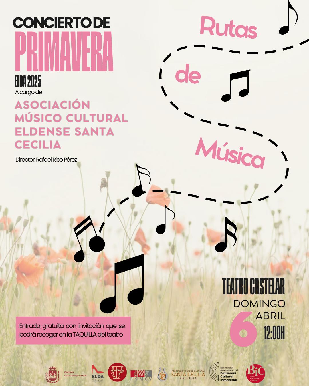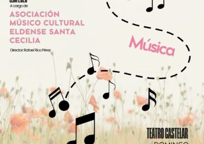 El domingo 6 de abril, a las 12:00 horas, el Teatro Castelar acogerá el Concierto de Primavera a cargo de la Asociación Músico Cultural Eldense Santa Cecilia, bajo la dirección de Rafael Rico y organizado por la Concejalía de Cultura. El edil del área, Iñaki Pérez Rico, ha anunciado que este concierto abre el semestre musical, que se inicia el próximo mes de abril, destacando que «un año más, la Santa Cecilia nos trae un concierto lleno de frescura y color, en el que podremos disfrutar de una serie de piezas que representan la transición de la estación invernal a la nueva primavera. Con esta bienvenida a la primavera comienzan estos meses en los que la música será la protagonista de la cultura en Elda».