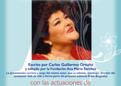 Por su parte, Carlos Ortuño ha destacado que «ha sido un trabajo arduo y un proyecto extraordinario porque muestra la vida y obra de una mujer extraordinaria. Desde que nos pusimos en marcha con este libro sentimos una inmensa responsabilidad porque si había una vida que contar en Elda era la de Ana María Sánchez. Este libro permite conocer a la cantante, pero también conocemos a la niña, a la estudiante, a la madre y esposa, a la amiga de sus amigos… También permite conocer a las personas que estuvieron a su alrededor y el papel que jugaron en su vida personas como su esposo, Pepe Rubio».