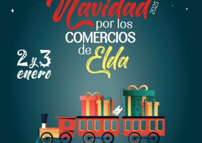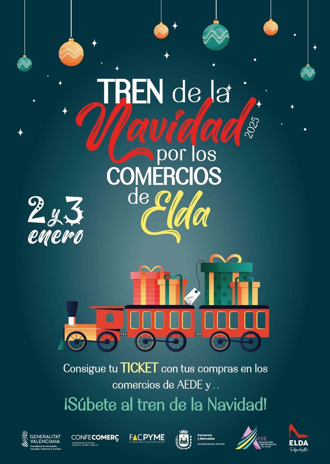 El Ayuntamiento de Elda, a través de la Concejalía de Comercio y Mercados, y la Asociación de Empresarios de Elda (AEDE), han anunciado esta mañana la puesta en marcha del Tren de la Navidad que los días 2 y 3 de enero recorrerá toda la ciudad para fomentar las compras navideñas en el comercio local.