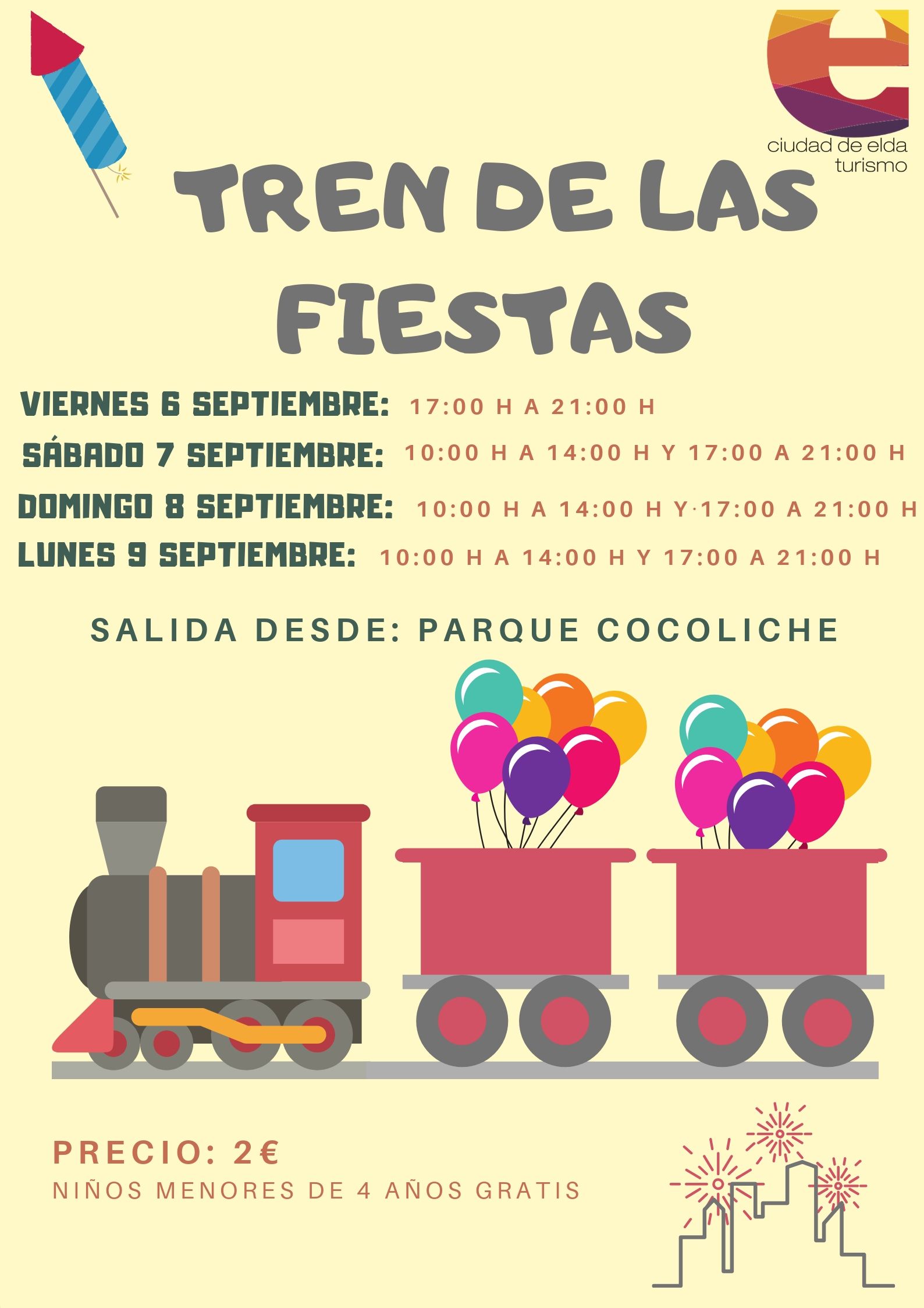 El Ayuntamiento de Elda pone en marcha el tren turístico, que estará en funcionamiento del viernes 6 al lunes 9 de septiembre y del viernes 13 al domingo 15 de septiembre.