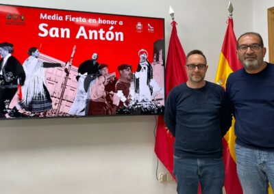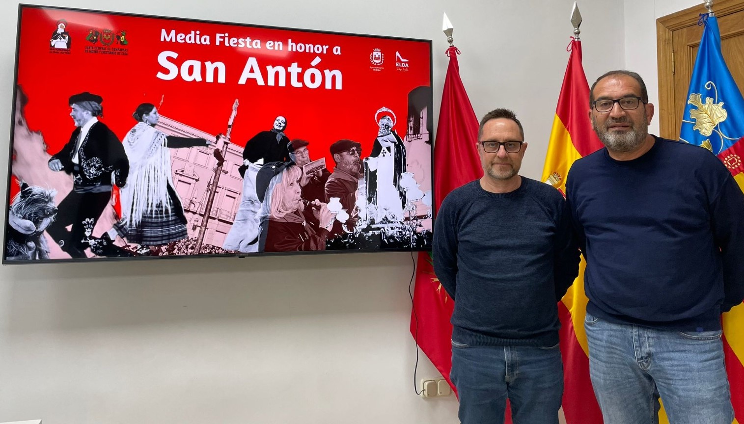 El concejal de Fiestas, David Guardiola y el presidente de la Junta Central de Comparsas de Moros y Cristianos, Pedro Serrano, han presentado hoy la programación de la Media Fiesta en honor a San Antón, que comenzarán el próximo viernes 12 y se prolongarán hasta el domingo 21 de enero.