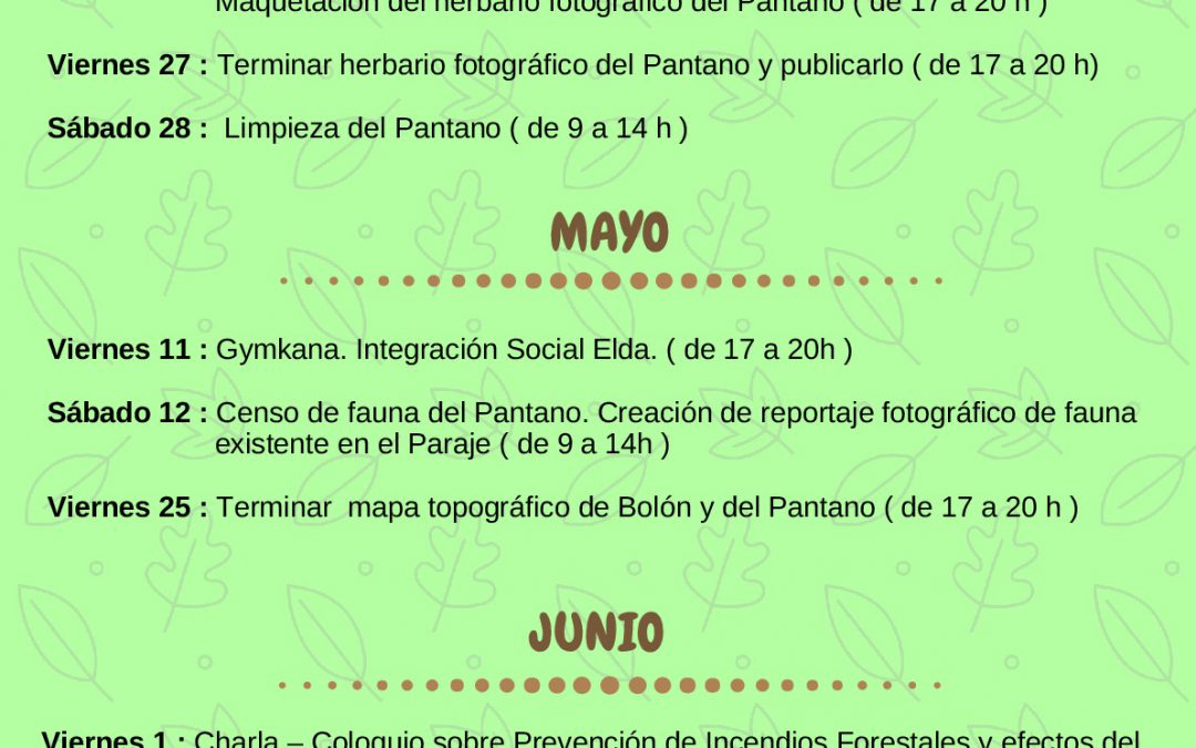 Viernes 13: Presentación y coordinación de actividades para primavera – verano Maquetación del herbario fotográfico el Pantano Biodiversidad (de 17 a 20h).
