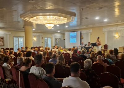 Durante la mañana se ha realizado una visita al Museo Arqueológico en la que los participantes disfrutaron de un recorrido guiado por este emblemático espacio. Por la tarde, en los Salones Princesa, se desarrolló un recital colectivo, donde decenas de autores compartieron sus versos en un recital abierto al público, destacando la diversidad temática y estilística de la poesía contemporánea valenciana.