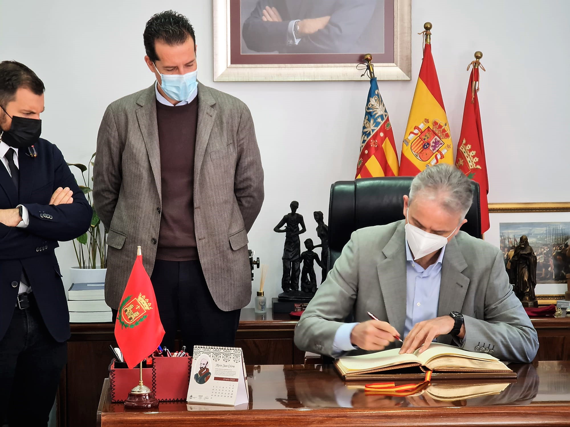 Después de la apertura de la jornada en el Museo del Calzado, Rubén Alfaro ha acompañado a Héctor Illueca en un recorrido a pie por el centro de la ciudad, visitando las obras de la Plaza de Arriba y el entorno del Castillo, así como el Ayuntamiento, donde ha podido conocer la vara de mando de Manuel Azaña y ha firmado en el Libro de Honor de la ciudad.