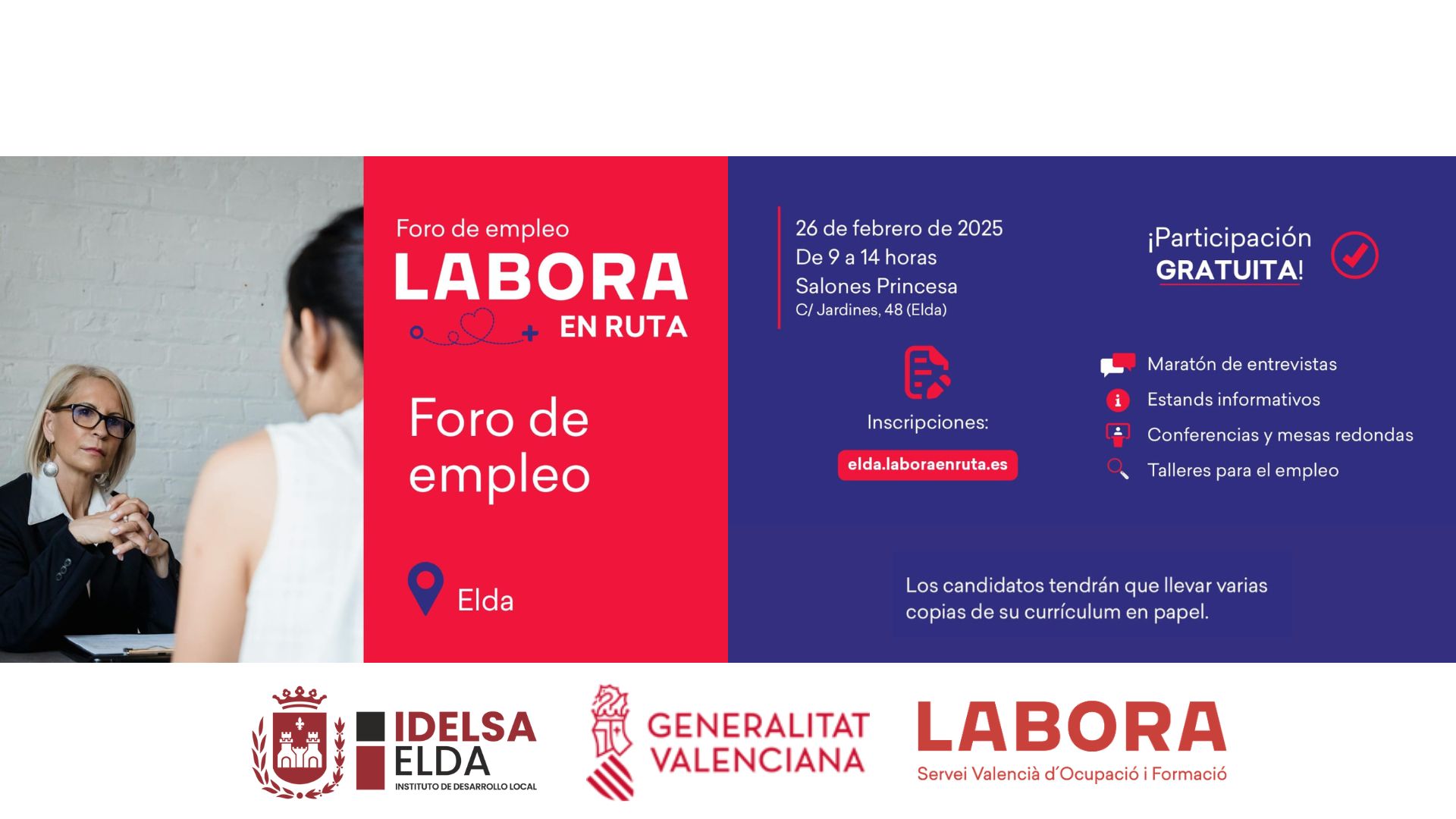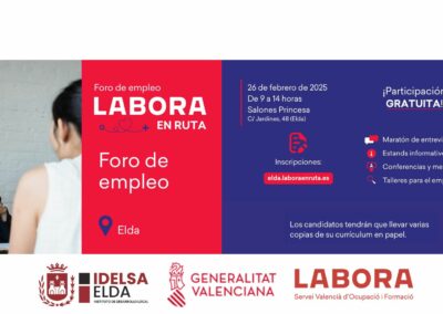 Lorena Pedrero ha explicado que «las personas interesadas en participar en este foro pueden inscribirse en la web elda.laboraenruta.es Desde el Ayuntamiento de Elda animamos a todo el mundo a que se inscriba y se acerque porque es un proyecto para acercar las empresas a las personas que no tienen trabajo y al mismo tiempo hacer ‘coworking’ entre las empresas».