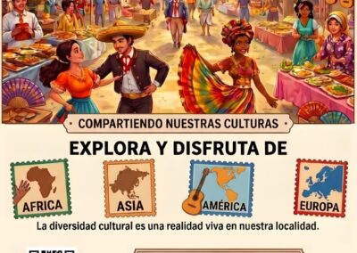 Estas actividades están diseñadas para fomentar el aprendizaje vivencial y el contacto directo con distintas culturas, promoviendo valores como el respeto, la empatía y la igualdad. La Feria de la Multiculturalidad está dirigida a toda la población: niños y niñas, familias, asociaciones y ciudadanía en general, con el propósito de generar un espacio de convivencia intercultural y participación activa.