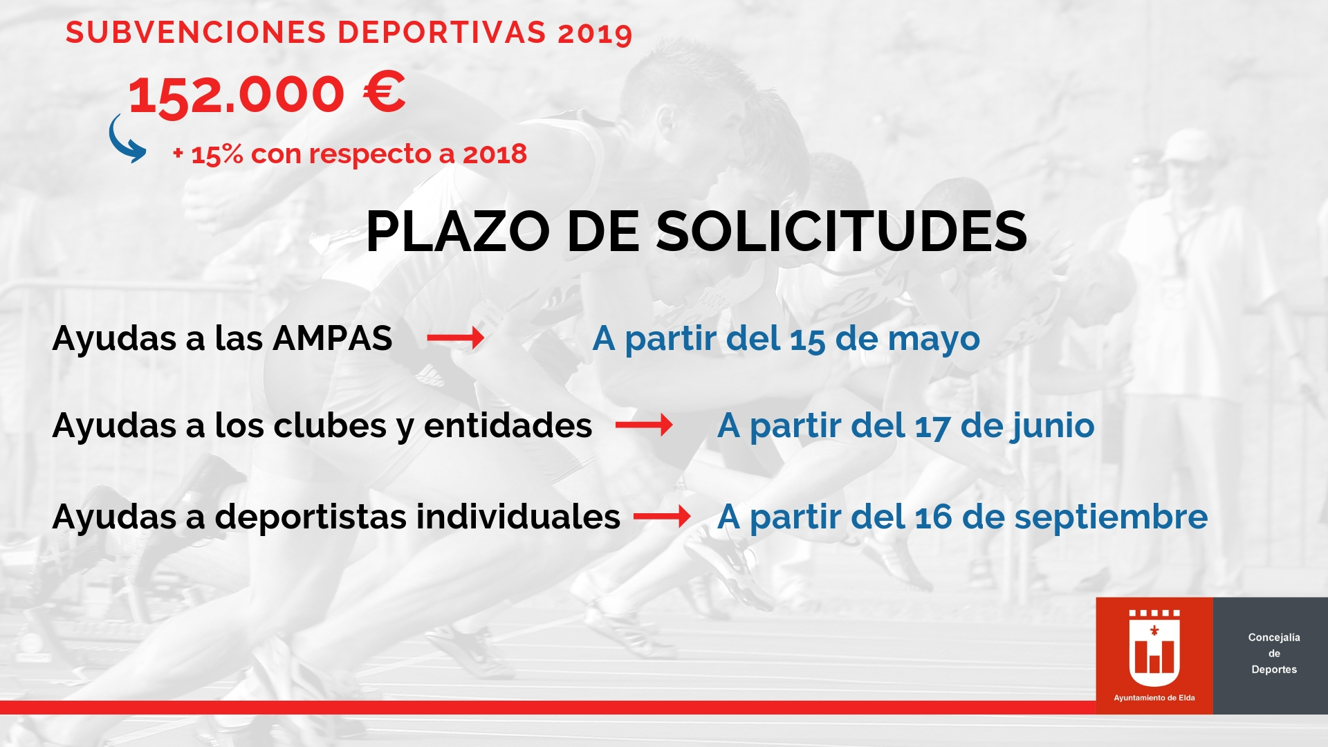 El concejal de Deportes del Ayuntamiento de Elda, Fernando Gómez, ha anunciado la reciente aprobación de las bases y la convocatoria para acceder a las subvenciones deportivas que el Ayuntamiento otorga anualmente a clubes y entidades, AMPAS y deportistas individuales de élite.