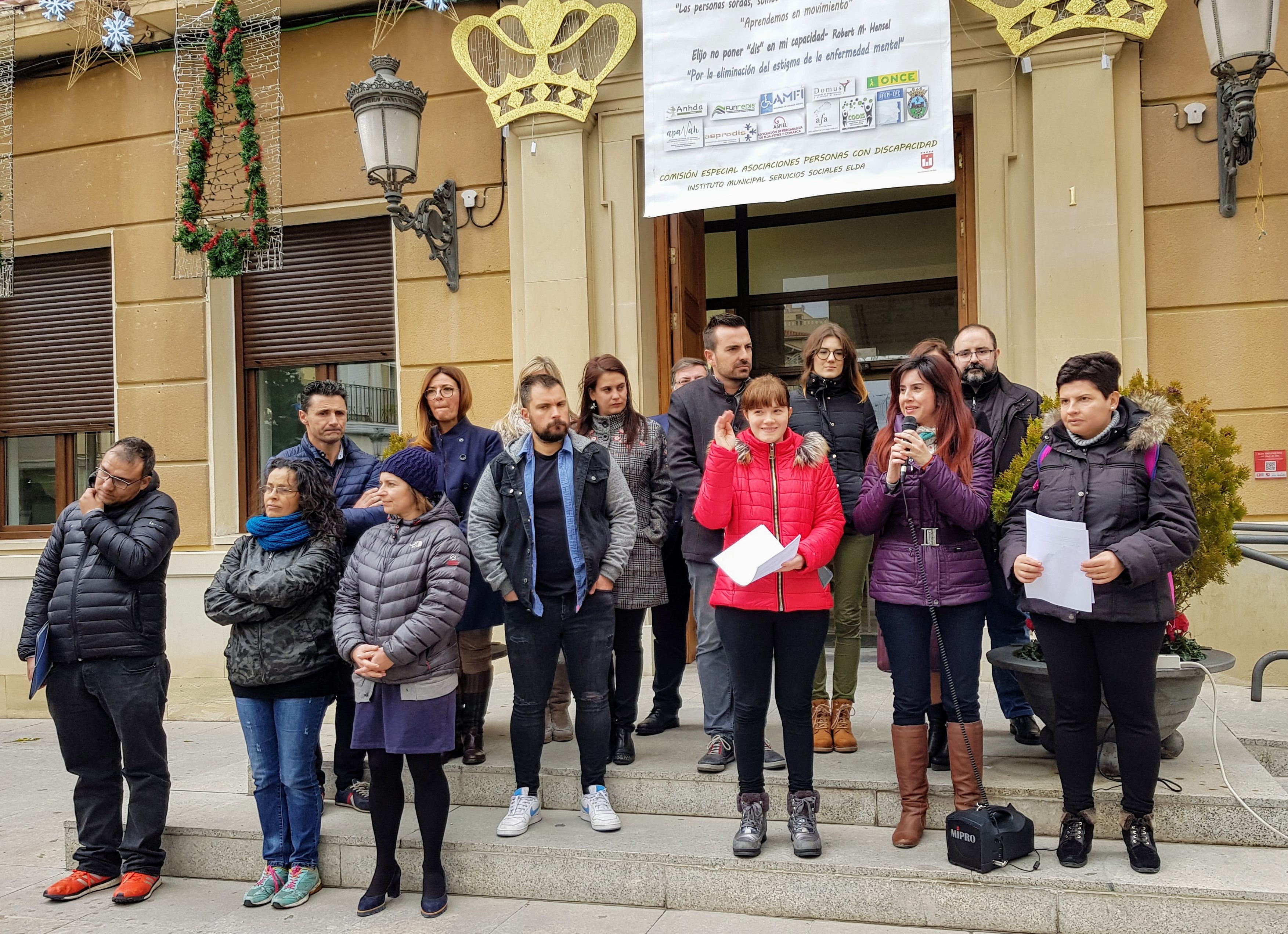 El Ayuntamiento de Elda ha celebrado hoy el Día Internacional de las Personas con Discapacidad con la colocación de una pancarta en la fachada de la Casa Consistorial y la lectura de un manifiesto redactado por alumnos del Ciclo de Atención a la Dependencia del Instituto de Formación Profesional Valle de Elda en una acto que ha contado con la presencia de miembros de la Corporación Municipal y de diferentes colectivos y asociaciones, así como de alumnos del aula específica del Colegio Público Antonio Machado.