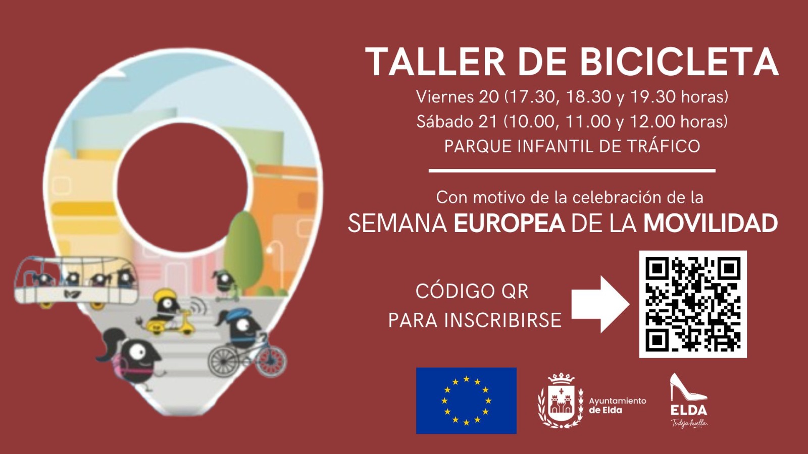 El Ayuntamiento de Elda, a través de la Concejalía de Control de la Movilidad, ha organizado un taller de bicicleta con motivo de la Semana Europea de la Movilidad que se celebra del 16 al 22 de septiembre. La actividad, dirigida a niños, niñas y adultos, tendrá lugar el viernes por la tarde y el sábado por la mañana en el Parque Infantil de Tráfico situado en la Avenida Las Agualejas.