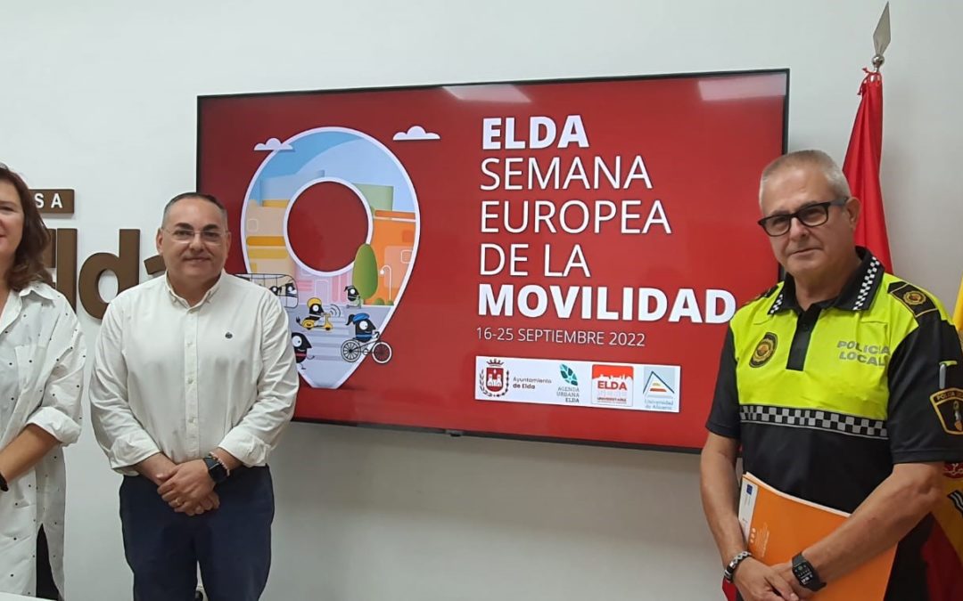 El concejal de Seguridad, Transportes y Movilidad Sostenible, Enrique Quílez, ha dado a conocer hoy el programa de actividades impulsado desde el Ayuntamiento de Elda con motivo de la Semana Europea de la Movilidad y que se desarrollará del 16 al 25 de septiembre. Quílez ha estado acompañado por la directora de la Sede Universidad de Elda, Charo Navalón, y el agente responsable de Educación Vial, Ernesto López.