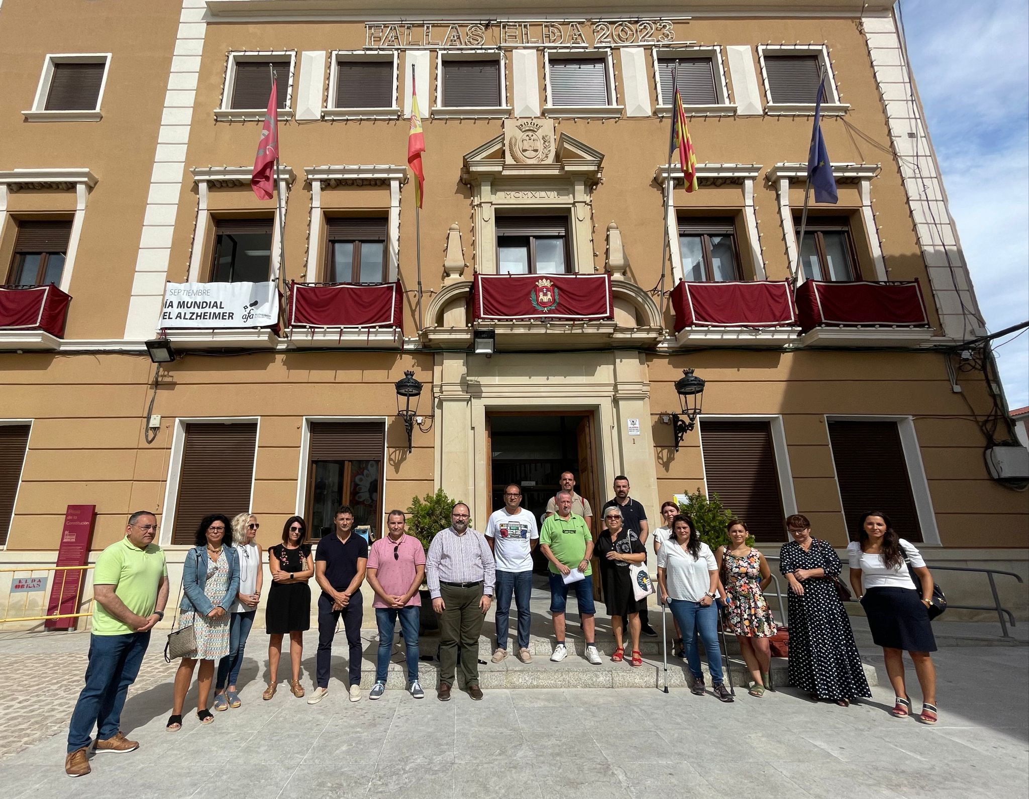 El Ayuntamiento de Elda se ha sumado hoy a los actos de conmemoración del Día Mundial del Alzheimer con la lectura de un manifiesto y la colocación de una pancarta en el balcón consistorial. Miembros de la Corporación Municipal han acompañado a los representantes de la Asociación de Familiares y Amigos de Enfermos de Alzheimer de Elda, Petrer y comarca (AFA) que se han dado cita en la Plaza de la Constitución.
