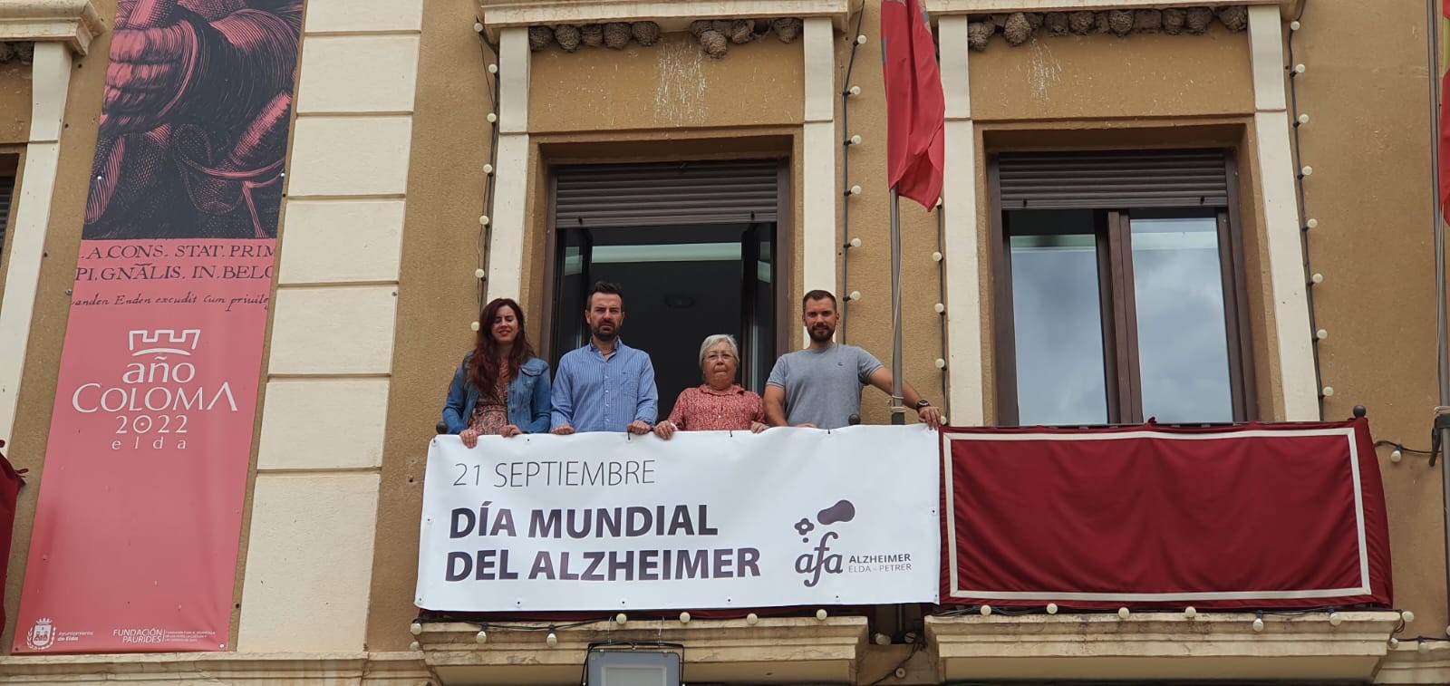 El Ayuntamiento de Elda se ha sumado a los actos de conmemoración del Día Mundial del Alzheimer con la lectura de un manifiesto y la colocación de una pancarta en el balcón consistorial. La Corporación Municipal ha acompañado a los representantes de la Asociación de Familiares y Amigos de Enfermos de Alzheimer de Elda, Petrer y comarca (AFA) que se han dado cita en la Plaza de la Constitución.