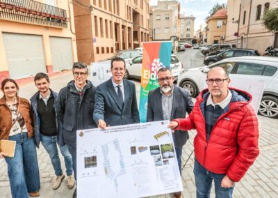 El alcalde de Elda, Rubén Alfaro, ha presentado esta mañana el proyecto de reurbanización del entorno de Santa Ana, una actuación financiada con fondos europeos a través del Plan de Sostenibilidad Turística y que forma parte del Plan ‘Elda parte de ti’. El regidor eldense ha estado acompañado por el concejal de Espacio Público e Inversiones, José Antonio Amat; la directora del área de Inversiones, Raquel Fernández, y los ingenieros responsables del proyecto, Bernardo Martínez y Marc Pastor.