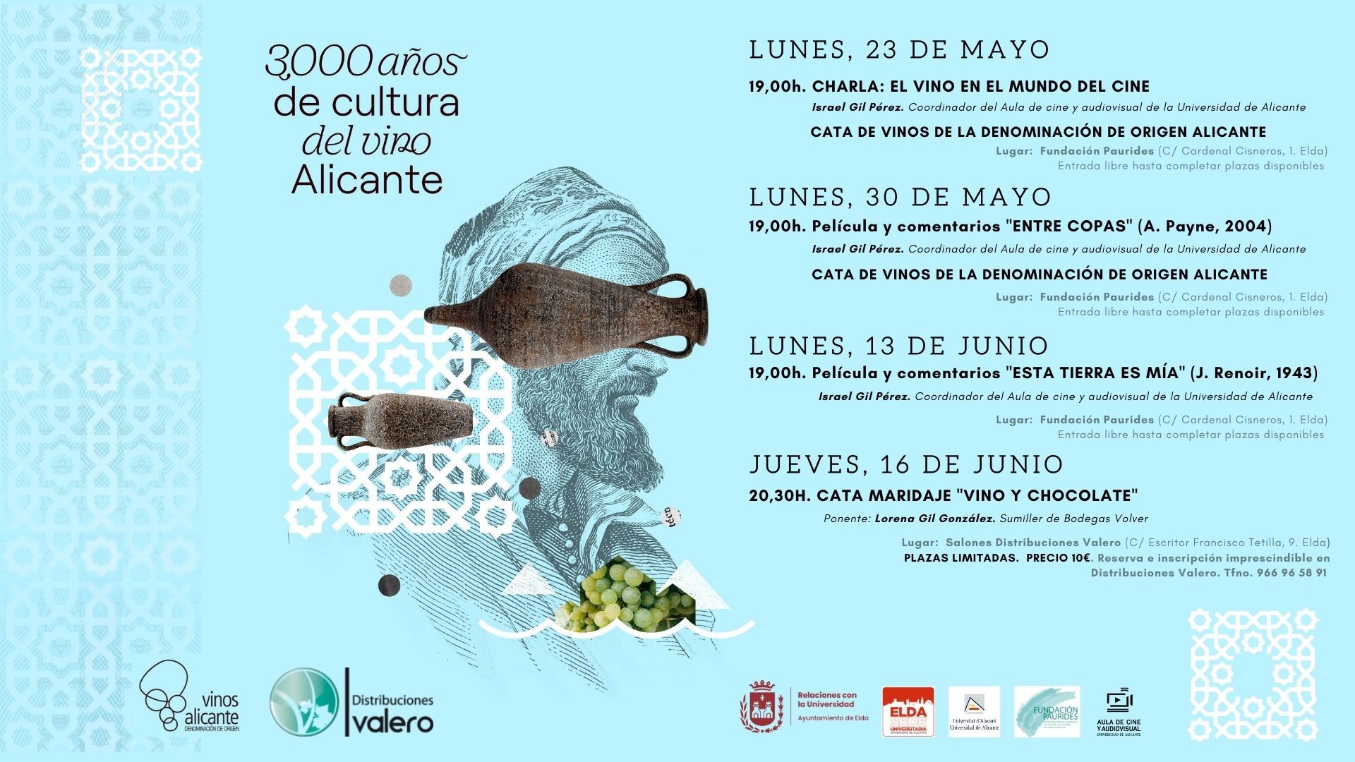 La actividad, organizada por la Sede Universitaria, la DOP Vinos de Alicante y la Fundación Paurides, incluye una conferencia, la proyección de dos películas y degustaciones de vinos alicantinos