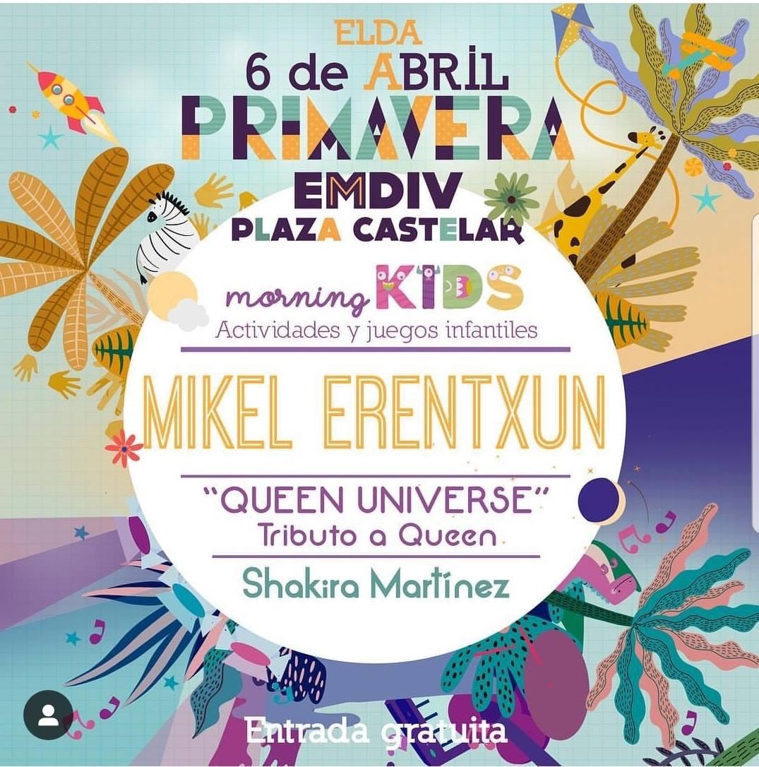 El sábado 6 de abril se celebra el ‘Primavera Emdiv’ con los conciertos de Mikel Erentxun, la cantante eldense Shakira Martínez y un tributo a Queen, además de un taller de pintacaras e hinchables para los más pequeños