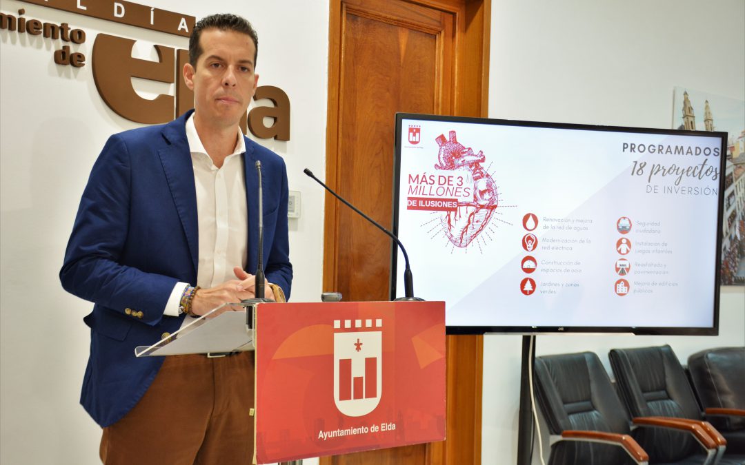 El alcalde de la ciudad, Rubén Alfaro, ha anunciado el mayor plan de inversiones con recursos propios de los últimos 15 años, que contará con un presupuesto que asciende hasta los 3,2 millones de euros para infraestructuras. En total, se van a afrontar 18 actuaciones por toda la ciudad, dentro del marco de las inversiones financieramente sostenibles, que responden a las demandas de los diferentes barrios y asociaciones de Elda y que están destinadas a satisfacer la calidad de vida de los vecinos de la ciudad.