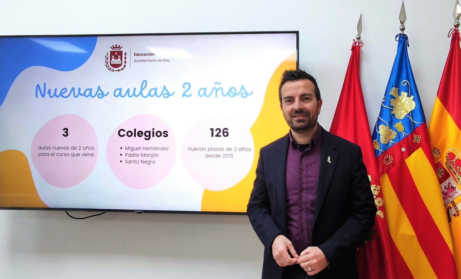 La Conselleria de Educación ha concedido a Elda tres nuevas aulas de 2 años para el próximo curso, tal y como ha anunciado esta mañana el concejal de Educación, Fernando Gómez. “En concreto, las aulas concedidas son para el C.P. Miguel Hernández, el C.P. Padre Manjón y el C.P. Santo Negro. Se trata de centros educativos que están ubicados en diferentes puntos de la ciudad. Con estas tres aulas, ya son siete las aulas de 2 años con las que contamos en nuestra ciudad”, ha informado Gómez.