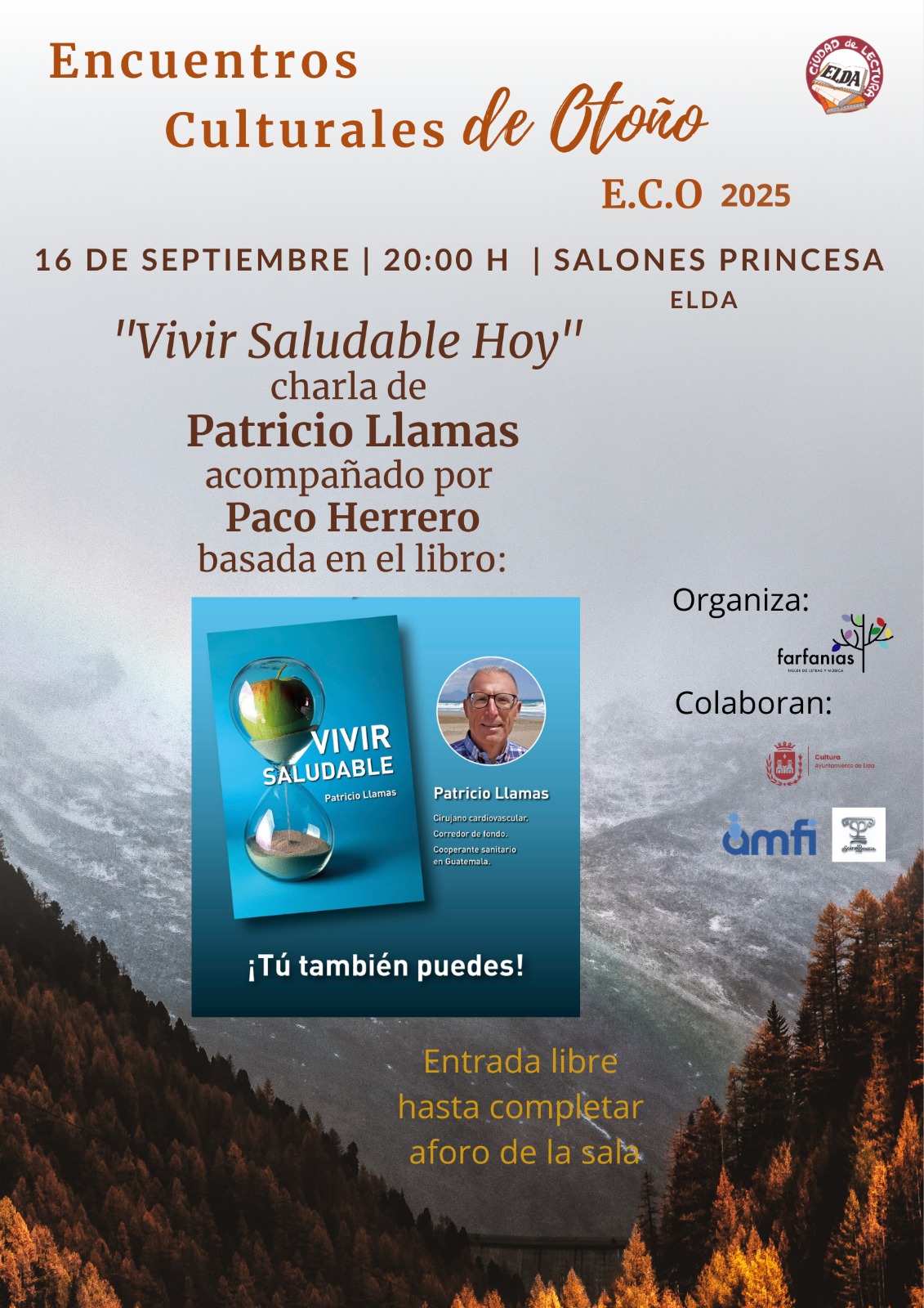 La propuesta cuenta con la participación de distintos colectivos culturales locales y de varias editoriales nacionales. El programa completo se dará a conocer en los próximos días, pero ya está confirmada la primera cita que será el martes 16 de septiembre, a las 20:00 horas, en los Salones Princesa con el doctor Patricio Llamas bajo el título ‘Vivir saludable’. La intervención se basa en su libro homónimo y contará con la participación del empresario Paco Herrero, que acompañará al autor en la mesa.