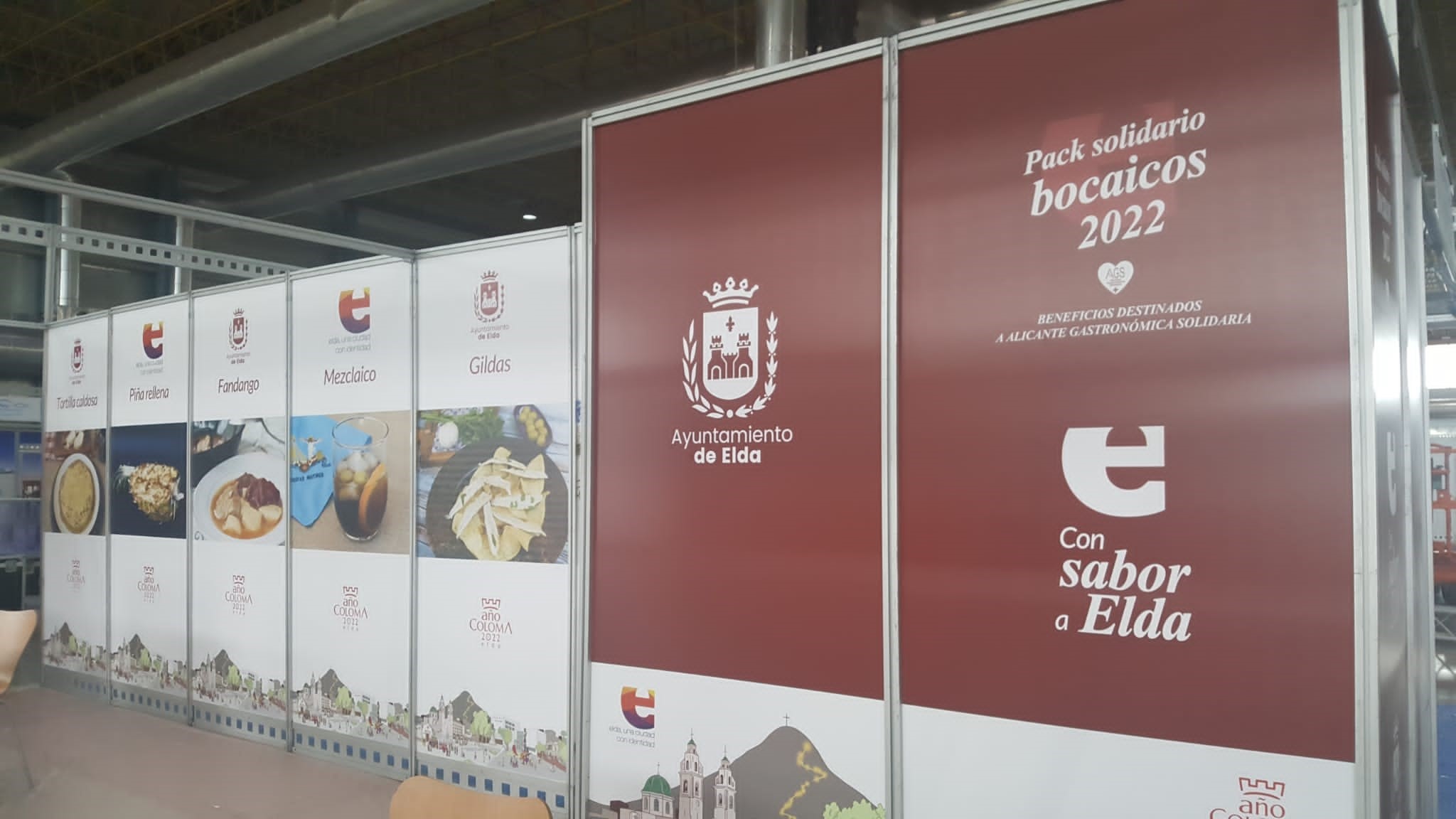 El Ayuntamiento de Elda ha instalado por primera vez un stand propio en el que varias empresas eldenses estarán presentes bajo el paraguas municipal para ofrecer degustaciones de productos locales, como mezclaíco, salazones y frutas. Además, estas firmas y comercios han preparado un pack solidario que bajo el nombre ‘Bocaicos 2022’ se venderá a un precio de 9 euros y la recaudación se destinará de manera íntegra a Alicante Gastronómica Solidaria.