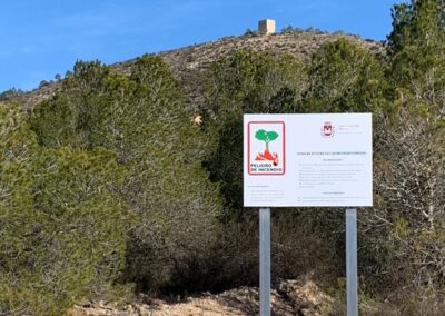 Los paneles se han instalado en el aparcamiento Marín, el camino a Bateig, el caserío de Camara, el acceso a la pista de La Lobera, en la Ermita de las Cañadas, en el acceso a la pistas forestales de las fajas norte y este del Hospital de Elda, en el camino de acceso al Pantano, en el camino de acceso a La Torreta y en el camino de acceso a la Pinada del Trinitario.