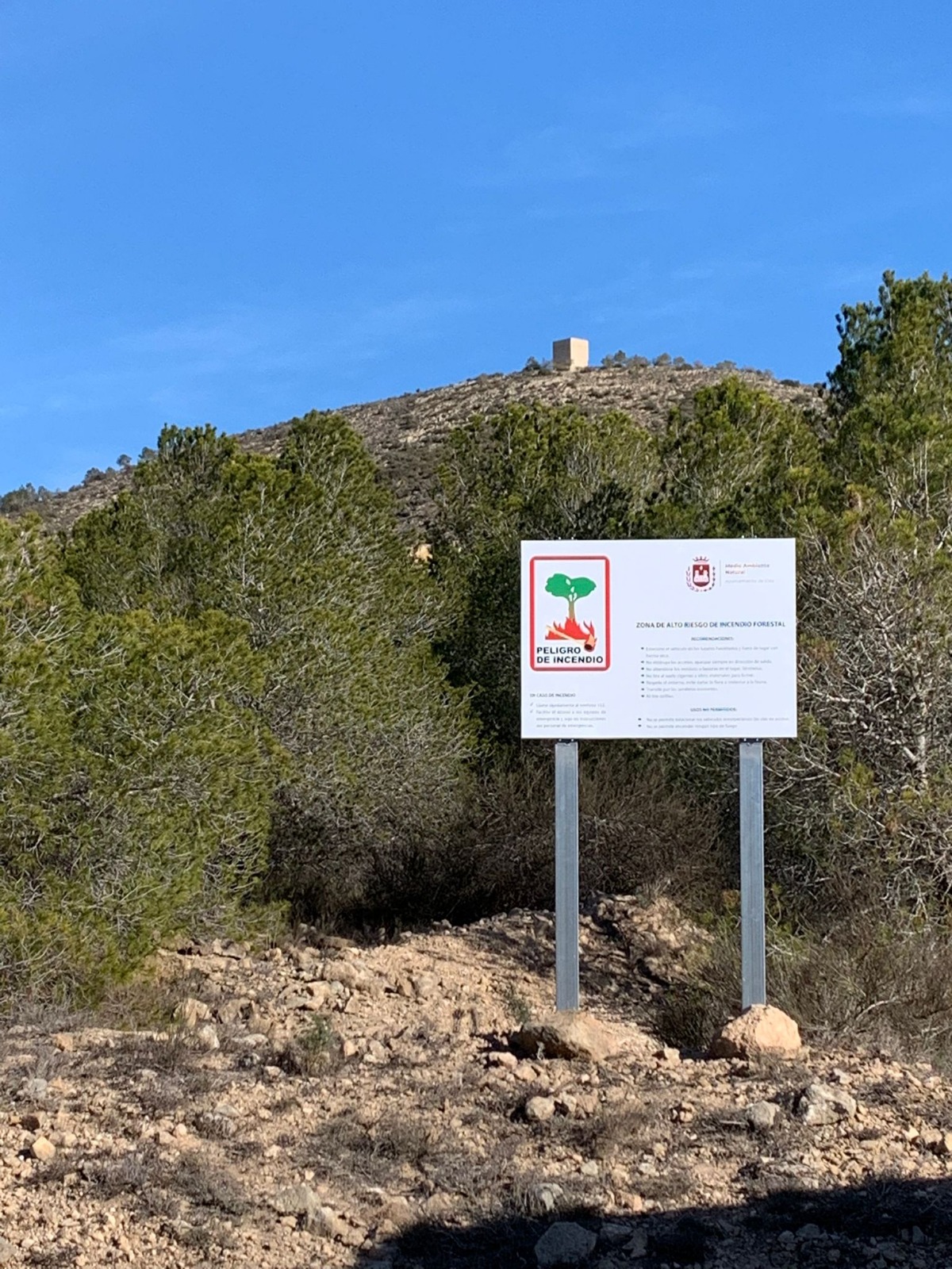 La actuación, que ha contado con una subvención de la Diputación de Alicante, ha permitido renovar una decena de paneles con pies metálicos que alertan en las zonas de alto riesgo de fuego