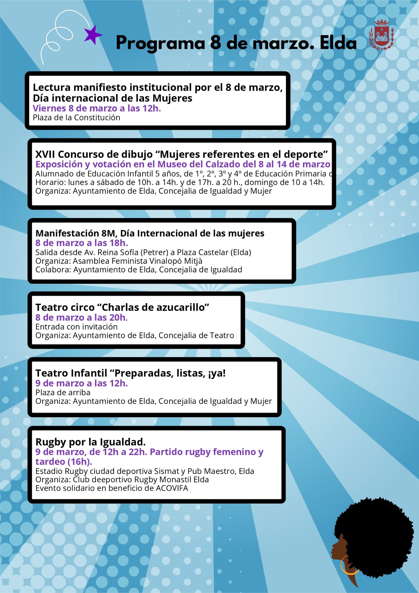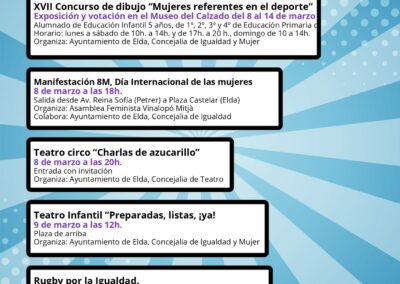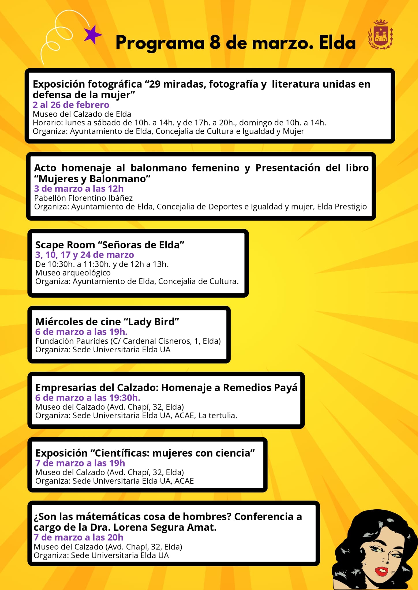 El Ayuntamiento ha impulsado un programa que tendrá su punto álgido con la Manifestación del viernes 8-M, se prolongará hasta el día 27 y en la que una vez más se han implicado concejalías, entidades, colectivos de la ciudad e instituciones públicas