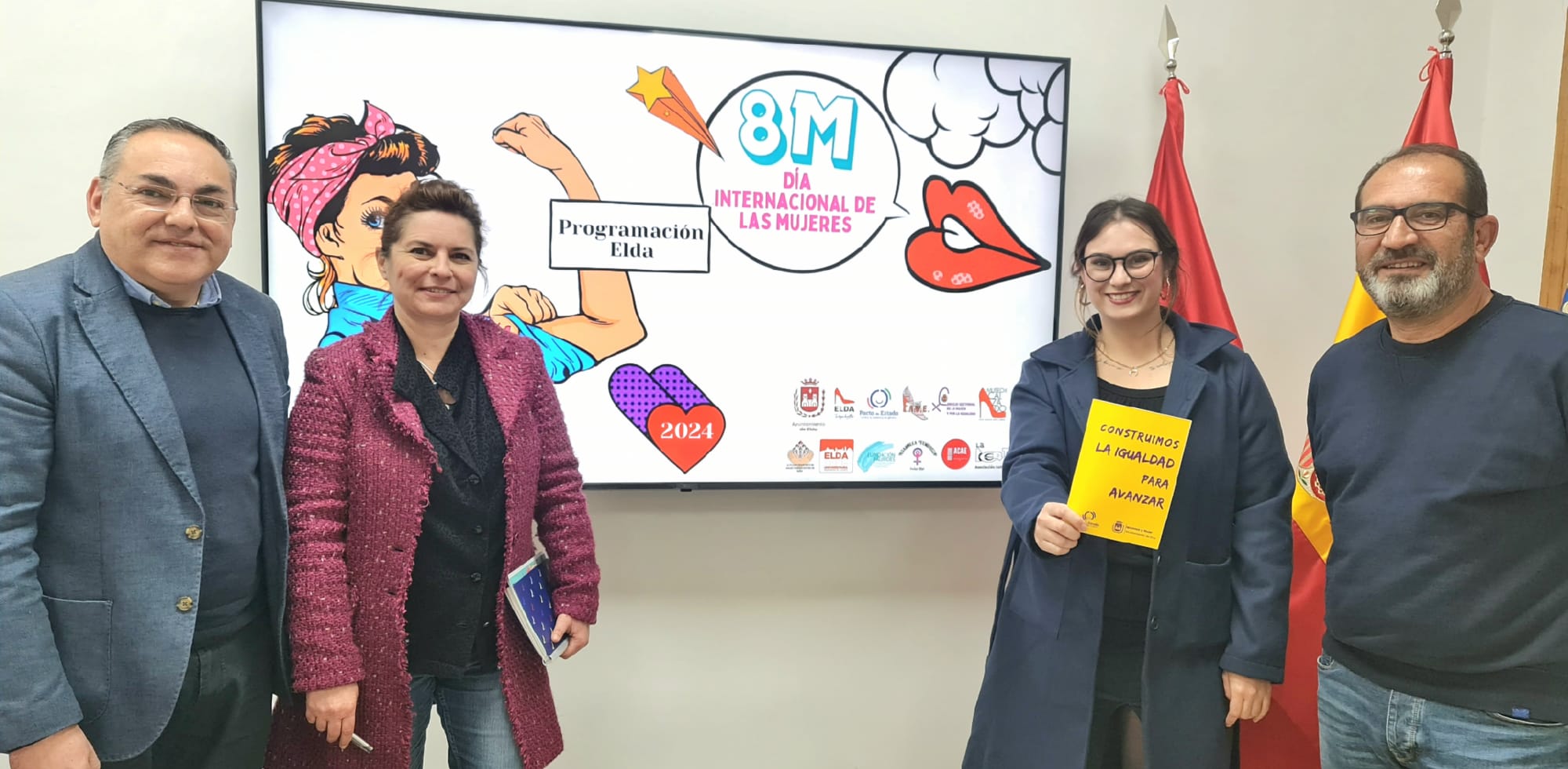 El Ayuntamiento de Elda, a través de diferentes departamentos, ha preparado un amplio programa de actividades con motivo de la celebración, el próximo 8 de marzo, del Día Internacional de la Mujer. Los ediles de Igualdad y Mujer, David Guardiola, y de Relaciones con la Universidad, Enrique Quílez, y las concejalas de Teatro, Rosa Vidal, y de Deportes, María Gisbert, han presentado un calendario que arranca este domingo, 3 de marzo, y se prolongará hasta el 27 de marzo. Además, el mismo día 8 tendrá lugar la Manifestación del Día de la Mujer, que comenzará a las 18.00 horas en la Avenida Reina Sofía de Petrer y finalizará en la Plaza Castelar.
