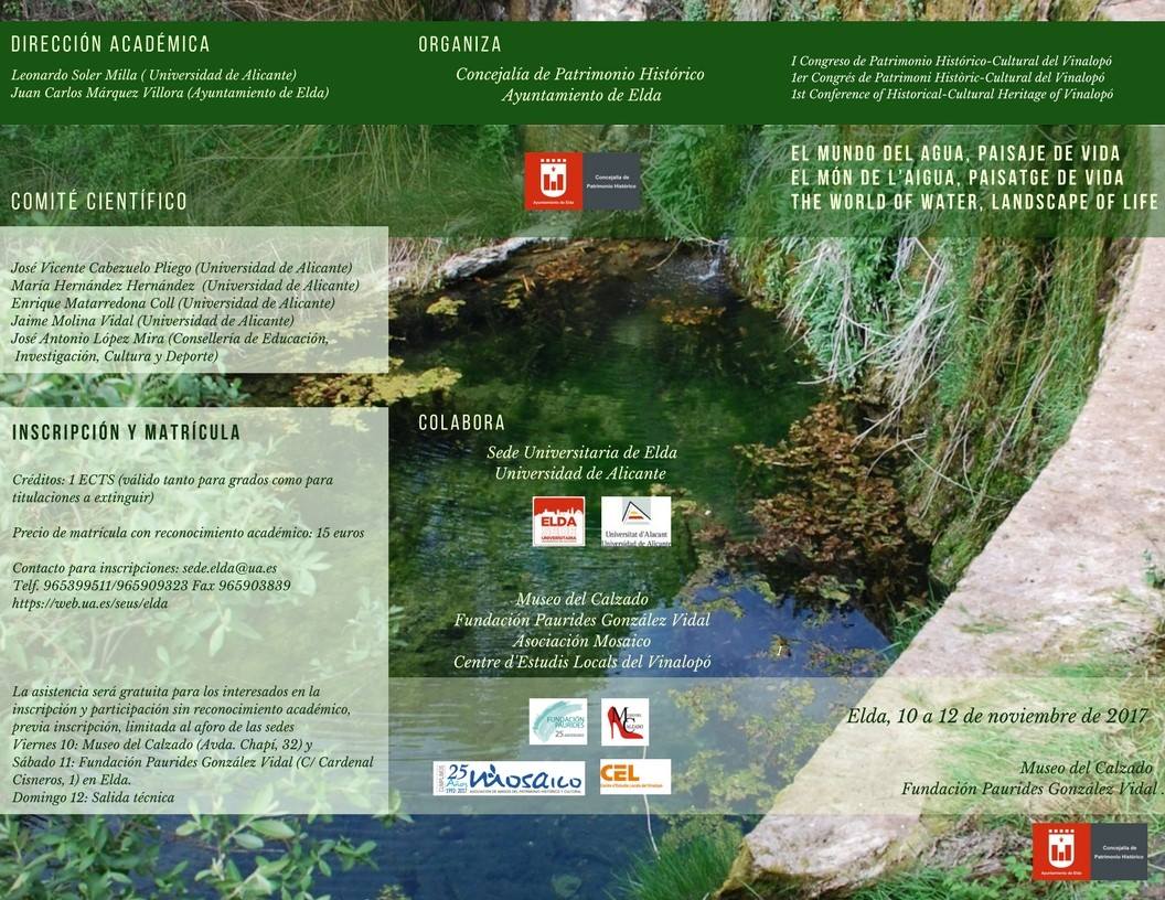 La concejalía de de Patrimonio ha organizado el I Congreso de Patrimonio Histórico-Cultural del Vinalopó, un simposio que tratará el agua como hilo vertebrador cultural en la zona del Vinalopó, bajo el nombre El mundo del agua, paisaje de vida.