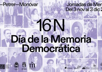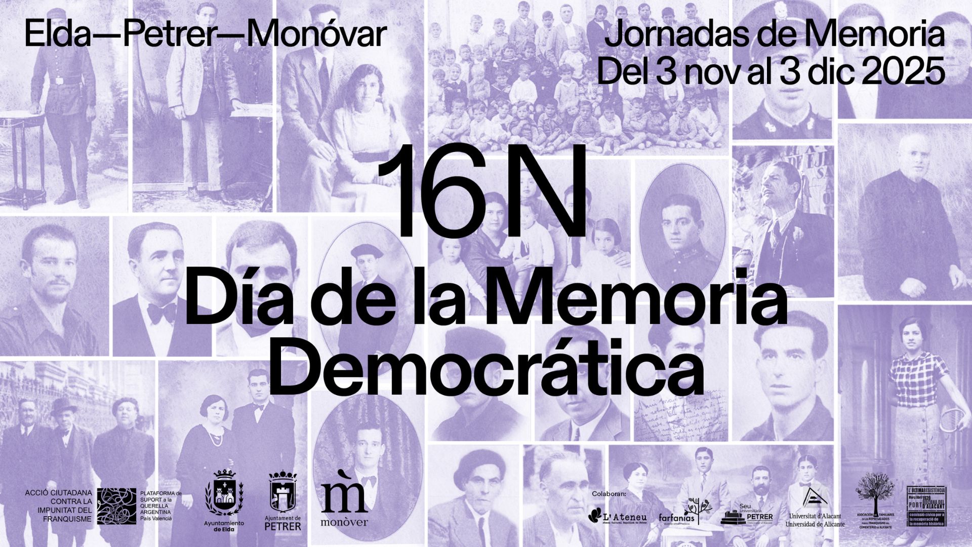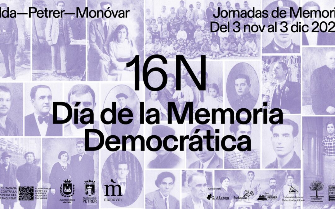El próximo 16 de noviembre se celebra en Elda, Petrer y Monóvar el Día Local de la Memoria Democrática, una efeméride con la que los ayuntamientos de las tres localidades y el colectivo Acción Ciudadana contra la Impunidad del Franquismo quieren recordar la represión, el silencio y el olvido sufrido por las víctimas del franquismo en la comarca.